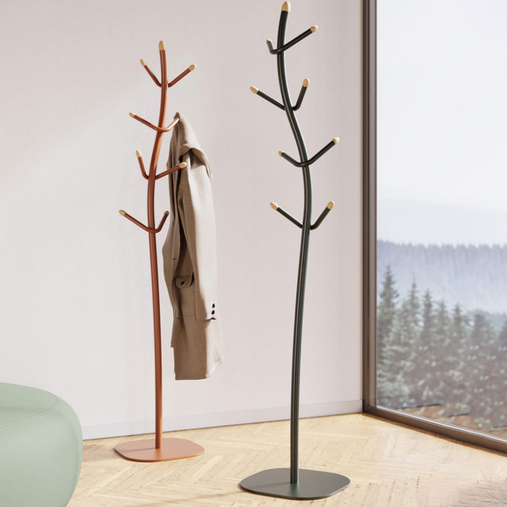 Spring este un salt catre natura. Structura sinuoasa si fluida a acestui suport pentru haine, realizat din otel tubular, evoca cresterea spontana a unei plante.