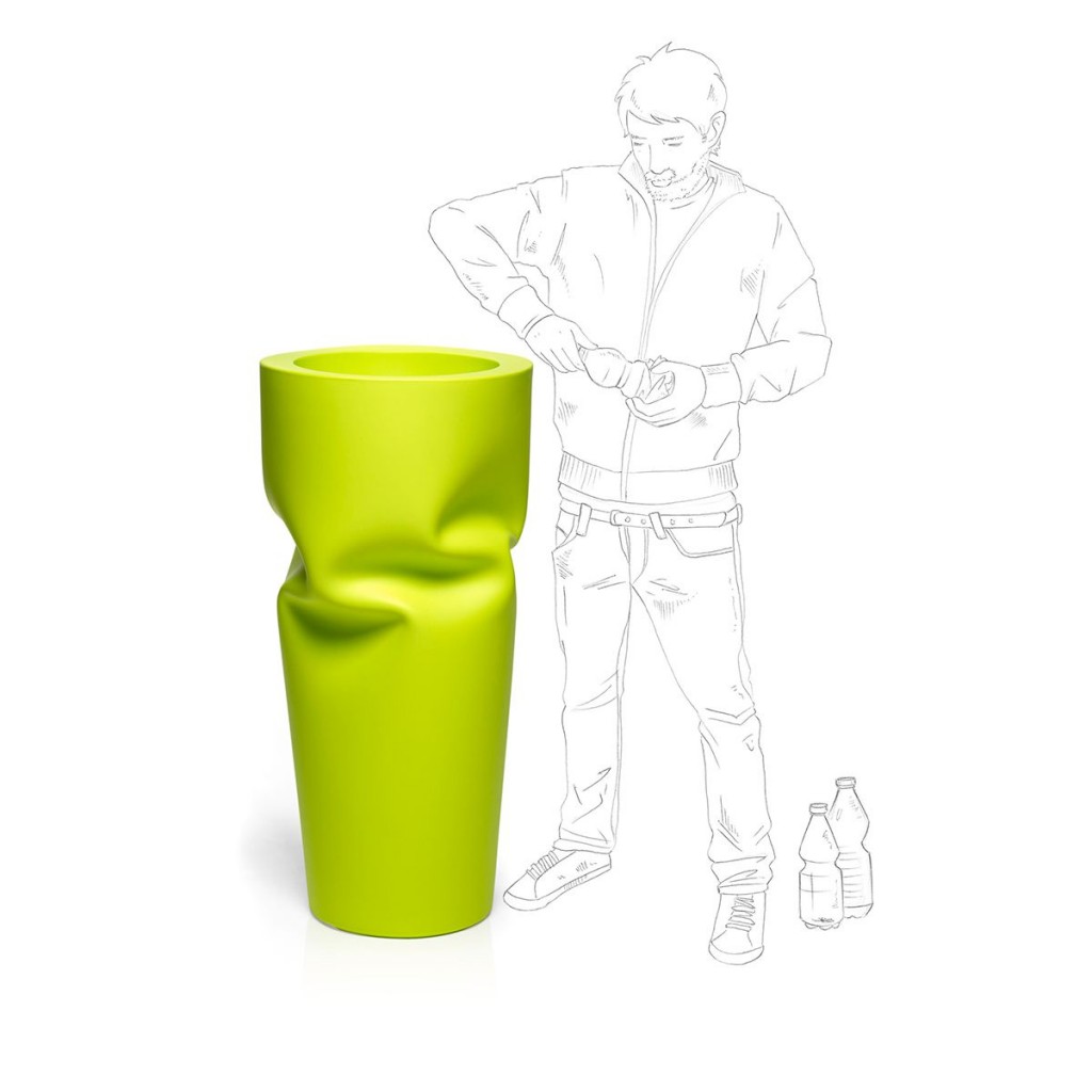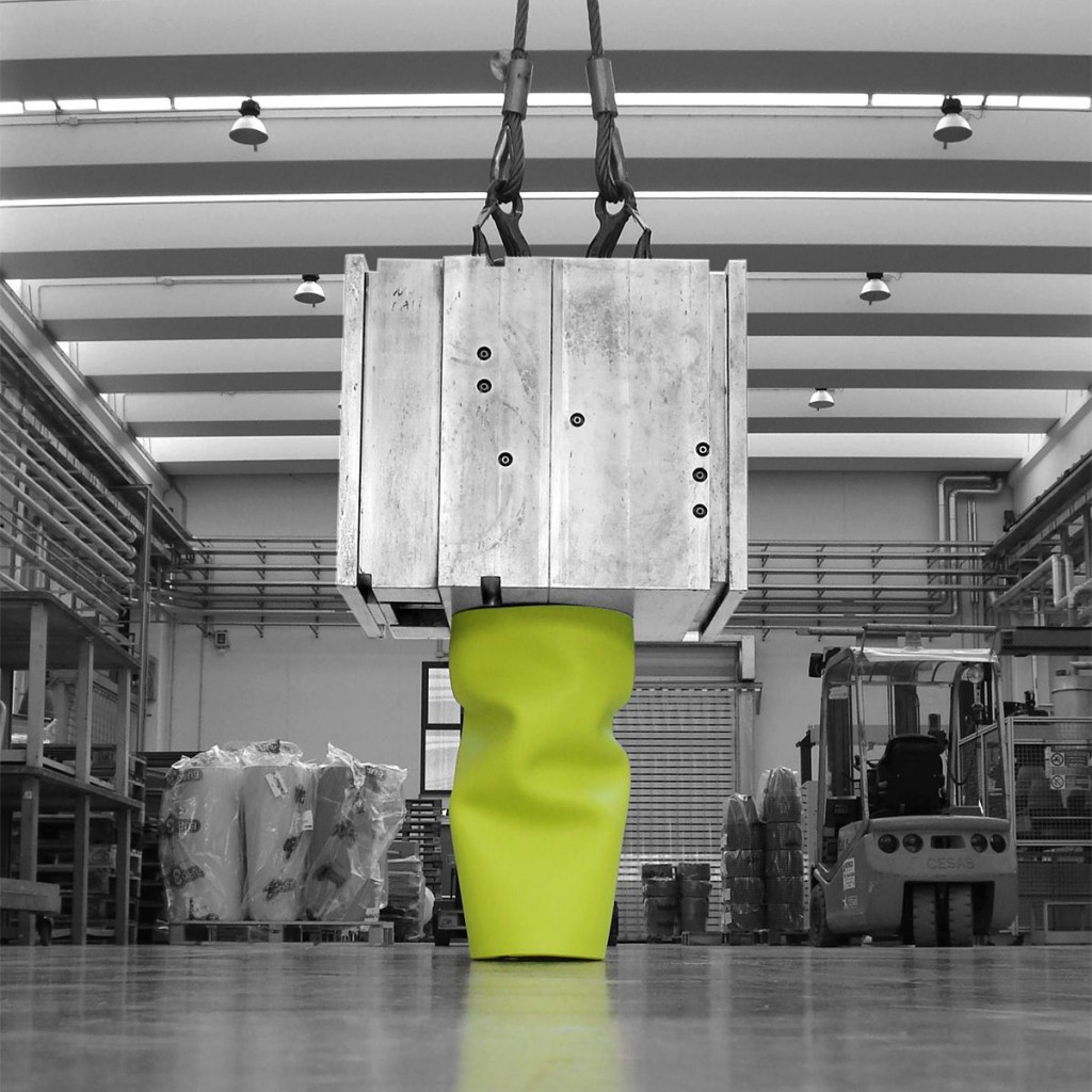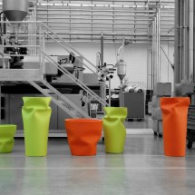 „Saving/ Space / Vase“ trece printr-un proces de „comprimare“, imediat dupa ce a fost scoasa din matrita sa, atunci cand materialul este inca partial maleabil pret de cateva minute. Obiectul industrial initial capata o noua conotatie imbogatita. O actiune care produce piese unice, dar industriale. Disponibila cu sistem de fixare la sol.