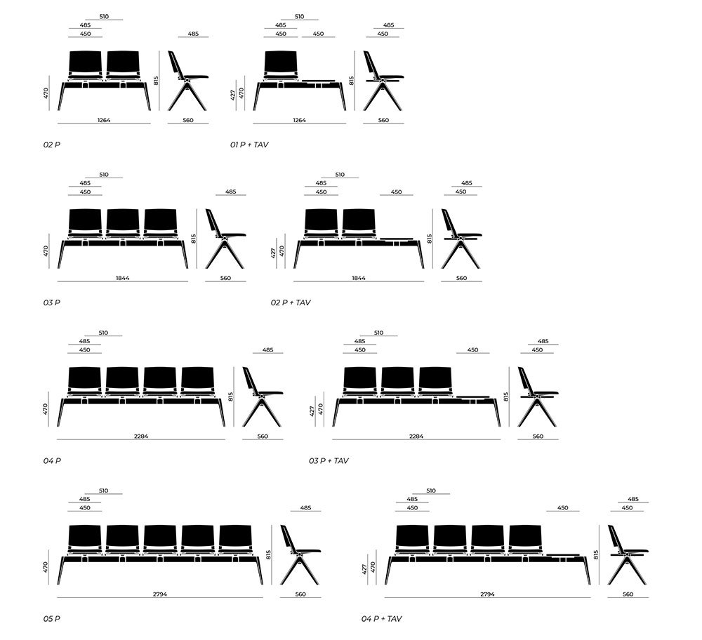 Sistem de scaune cu 2 locuri plus masa pentru zona de bar si restaurante. Cadru din otel. Scaun si spatar din polipropilena.Utilizari:birouri si sali de asteptareUltimul proiect al lui Franc.. -