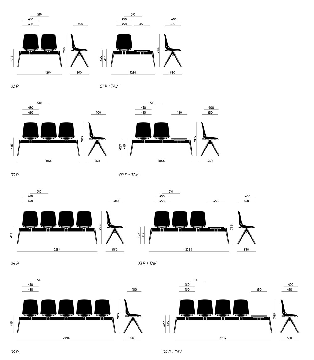 Bancheta sala de asteptare Nahu Essential Java Plastic Bench 3P + TAV