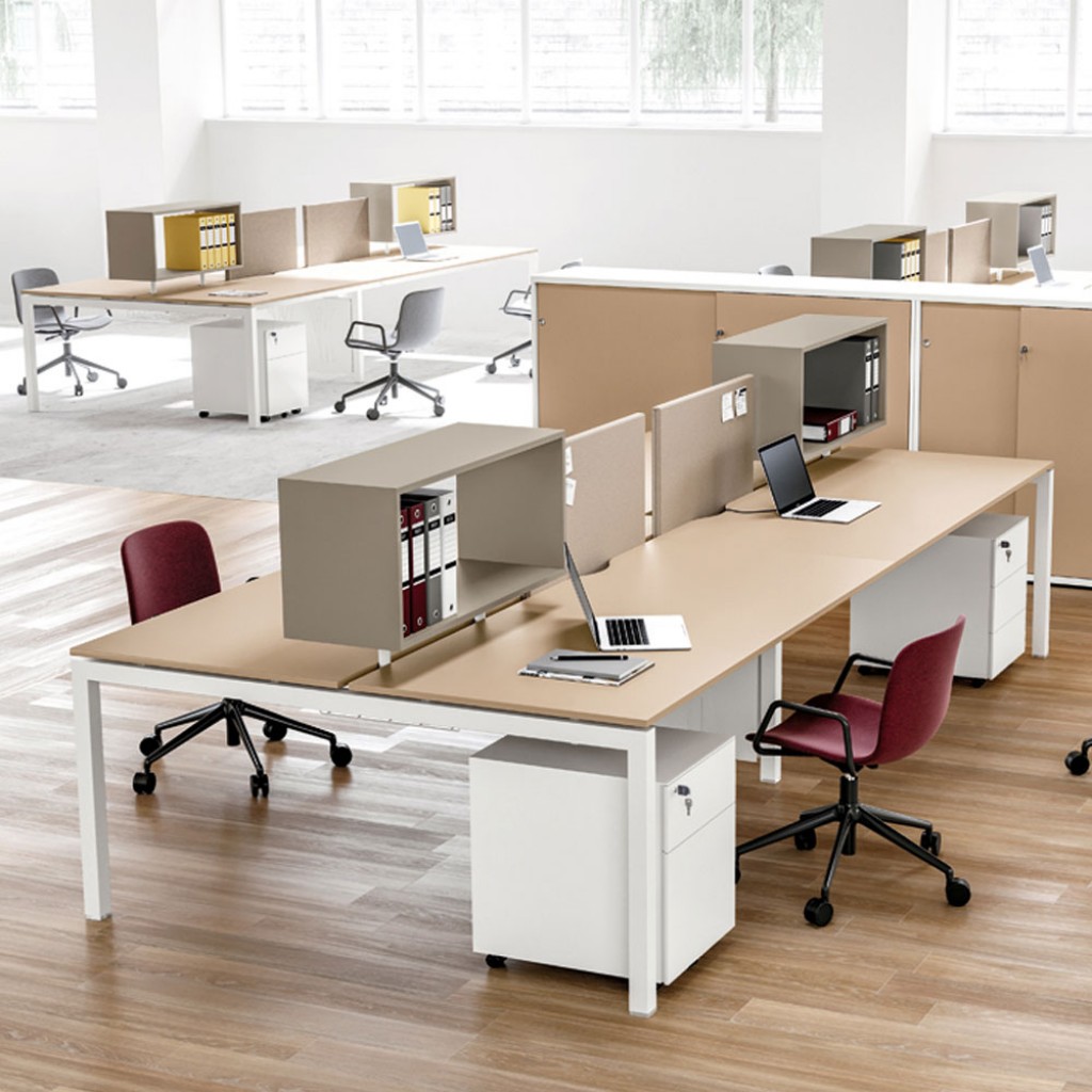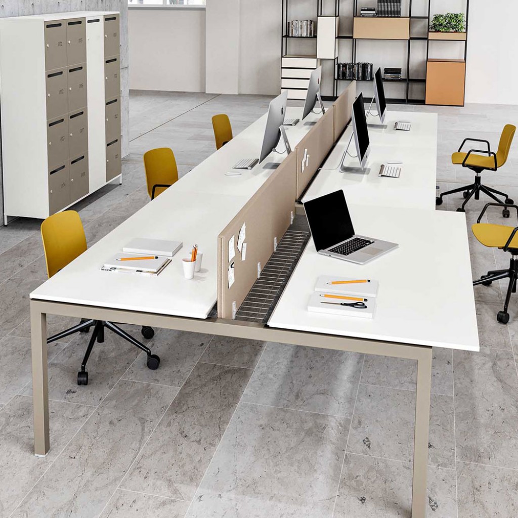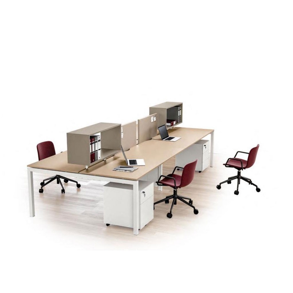 Italo ofera o structura plus picioare metalice cu un sistem de montare rapida si nu necesita suruburi. Partea superioara este din melamina si are 1,8 mm grosime. Este disponibila cu structura metalica in 10 finisaje si melamina in 17 finisaje. Blaturile de lucru pentru banca de rezerve sunt de asemenea disponibile cu un sistem de traversare, care permite accesul facil la compartimentul central de colectare a cablurilor.