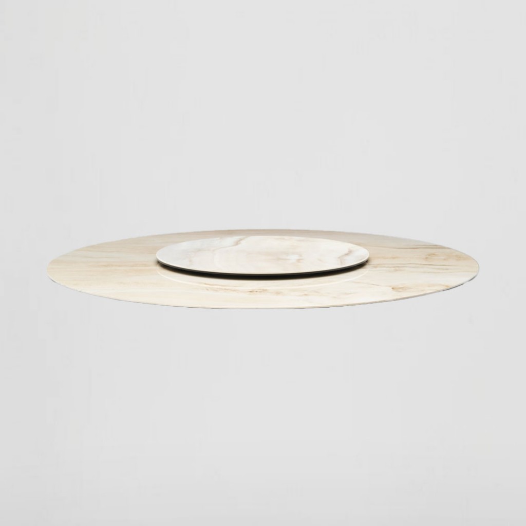 Cu o estetica eleganta, masa Apian adopta o abordare de design arhitectural si a fost realizata cu meticulozitate din materiale rafinate. Look-ul aerisit aminteste de o tabla de metal curbat.. -