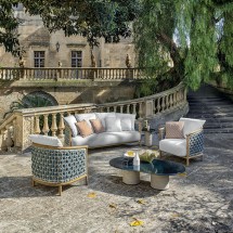 Patio este o colectie de lounge cu forme primitoare si o functie de cocon, conceputa pentru a imbratisa corpul intr-o invaluire confortabila. Numele si tesatura speciala arcuita amintesc de terasele interioare traditionale atat de tipice arhitecturii spaniole. Colectia Patio decurge din pasiunea pentru varietatea de tesaturi si modele descoperite in calatorii. Colectia cuprinde masute de cafea si mese pentru dining, scaune, fotolii si canapele de exterior, precum si un hamac pentru relazare.
