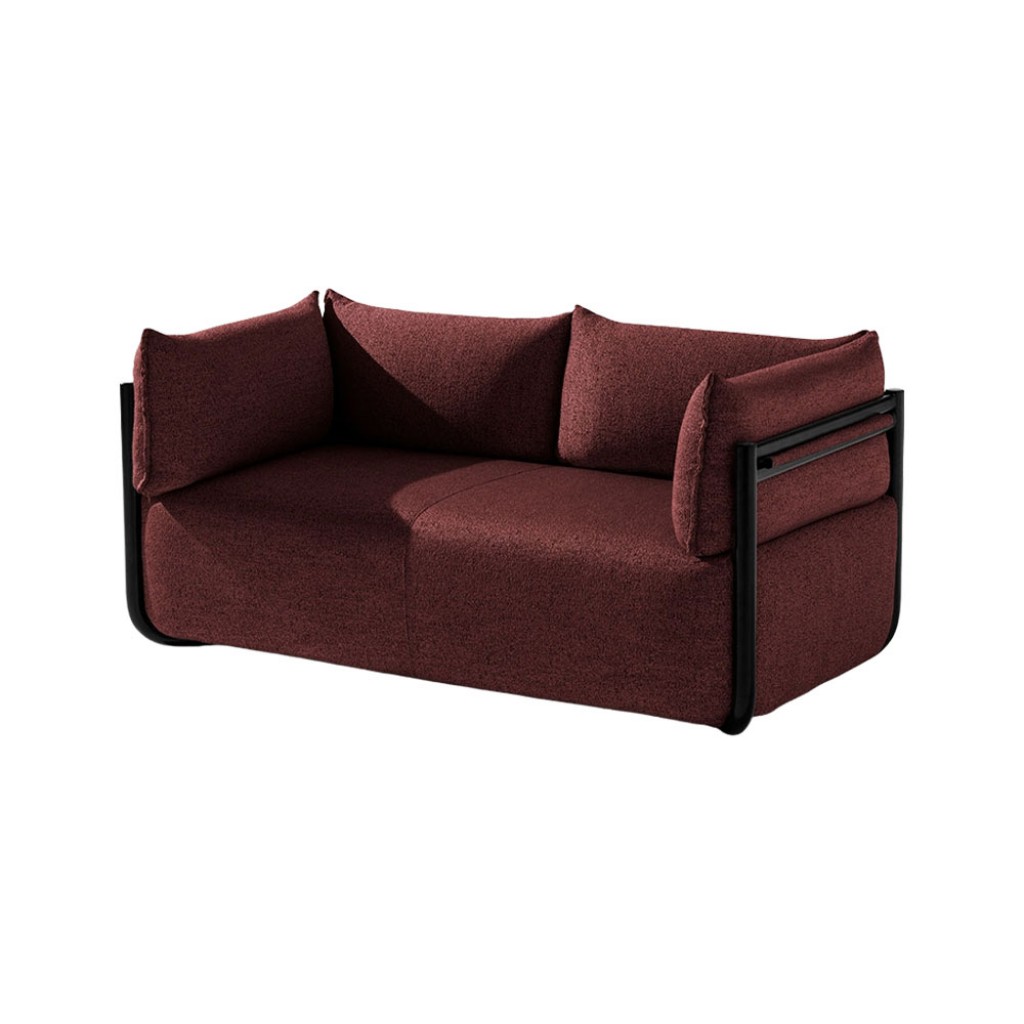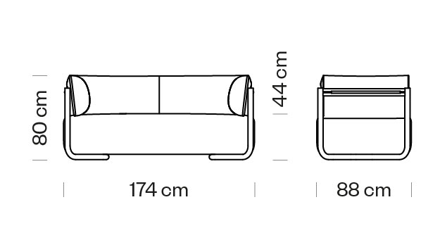 Canapea cu 2 locuri, cu cotiere. Sezut, spatar si cotiere tapitate. Cadru din otel.