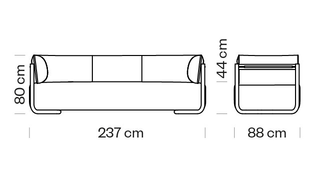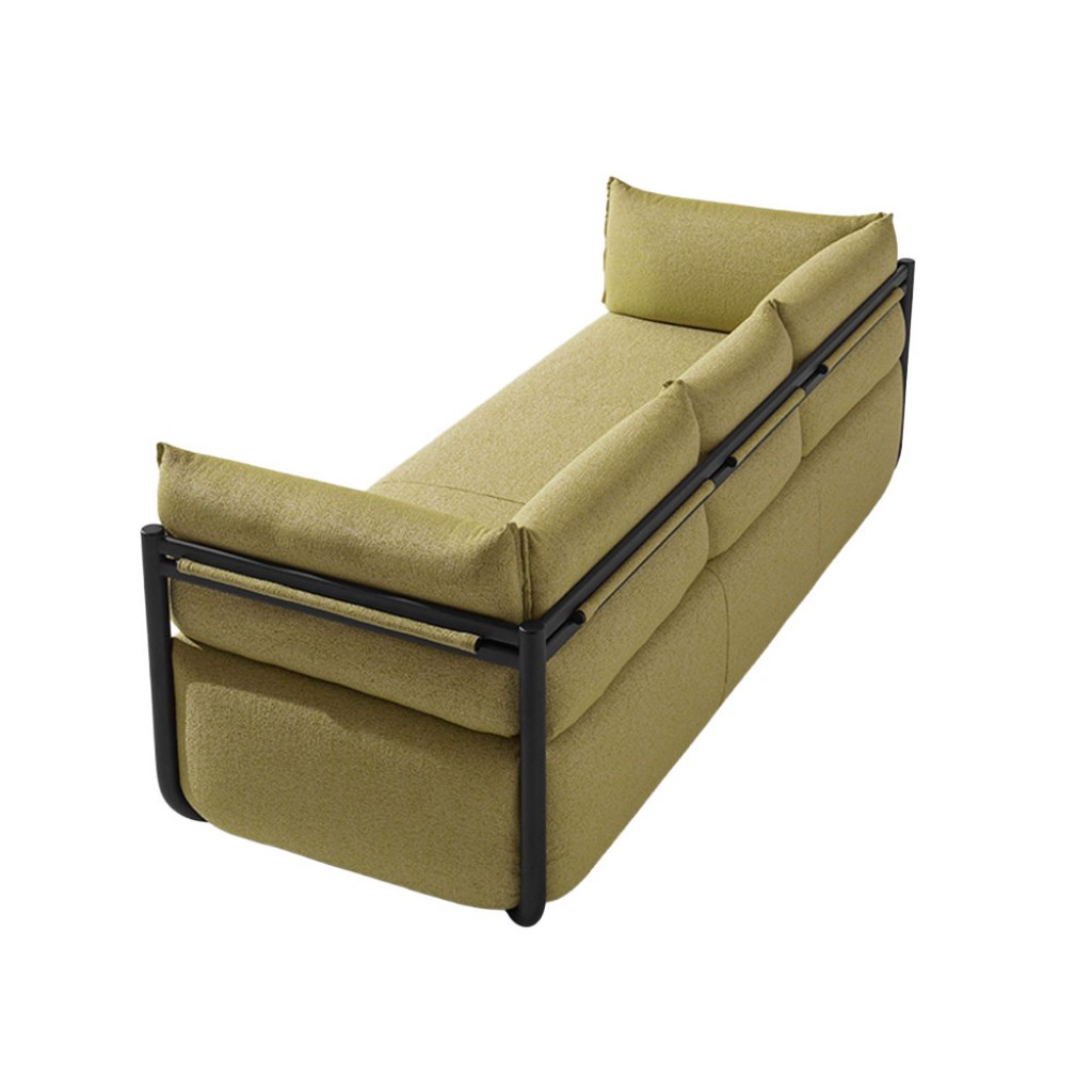 Canapea cu 3 locuri, cu cotiere. Sezut, spatar si cotiere tapitate. Cadru din otel.