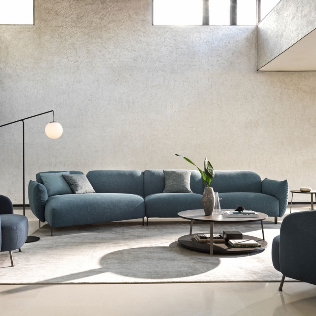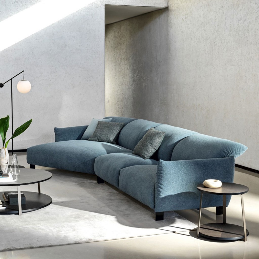 Ca un nor moale. Compacta si primitoare, canapeaua Blum se remarca prin designul curat, modularitatea si ajustarile practice ale spatarelor si cotierelor sale. Exista multe posibilitati de configurare datorita formelor si dimensiunilor disponibile: de la versiuni cu doua sau trei locuri pana la taburet si terminale de colt.
