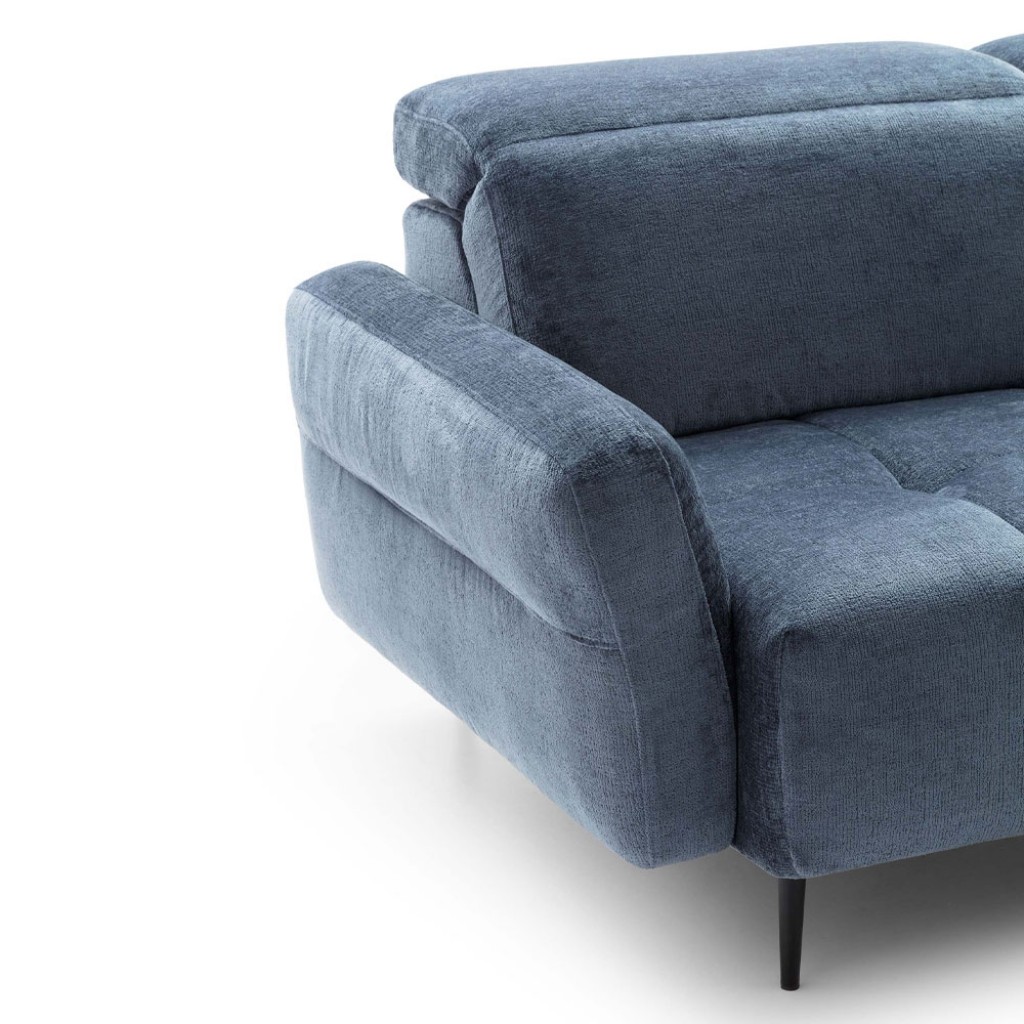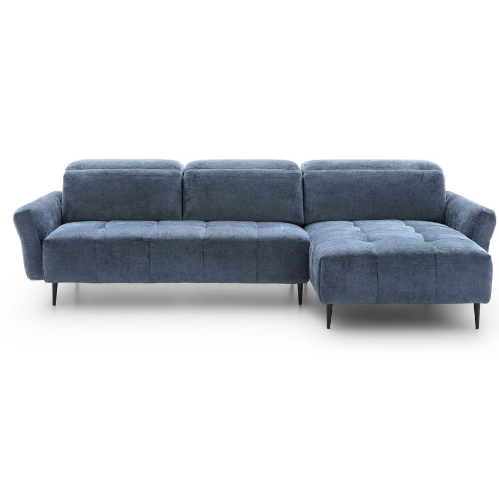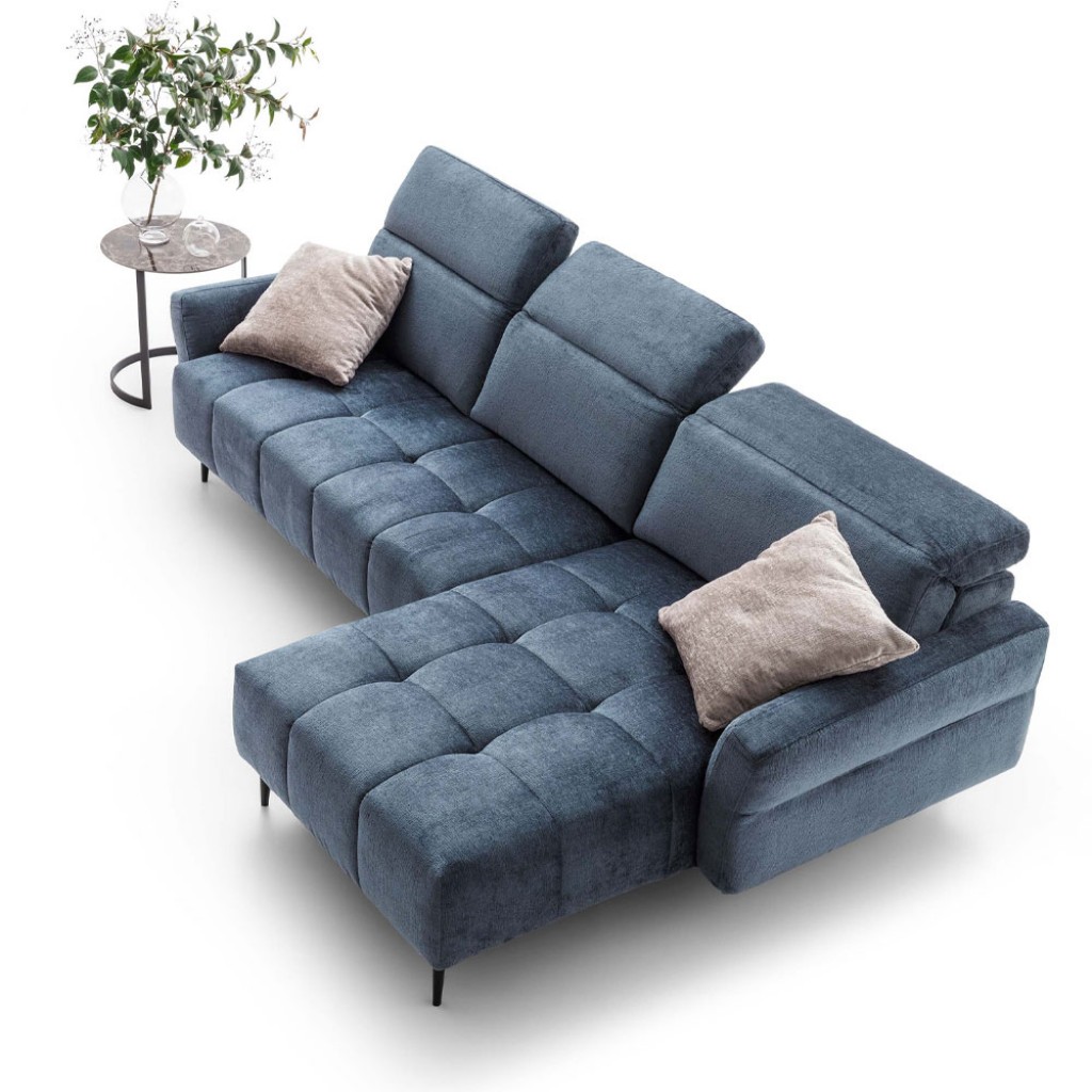 Canapea modulara cu design rotunjit, tetiere reglabile si sezlong.