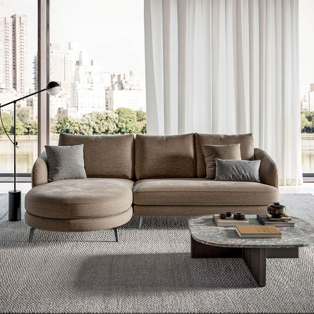 Canapea modulara cu design rotunjit, tetiere reglabile si sezlong.Configurati canapeaua pentru a se potrivi nevoilor dumneavoastra estetice si spatiale.Alegeti intre piele sau huse din mater.. -