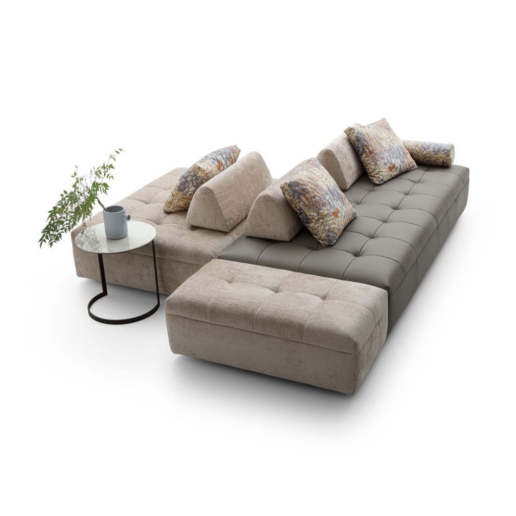 Canapea cu design curbiliniu, cu sezute glisante, tetiere reglabile si cotiere personalizabile.Configurati canapeaua pentru a se potrivi nevoilor dumneavoastra estetice si spatiale.Alegeti i.. -