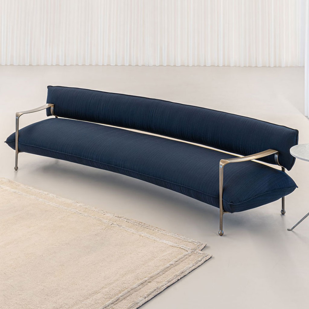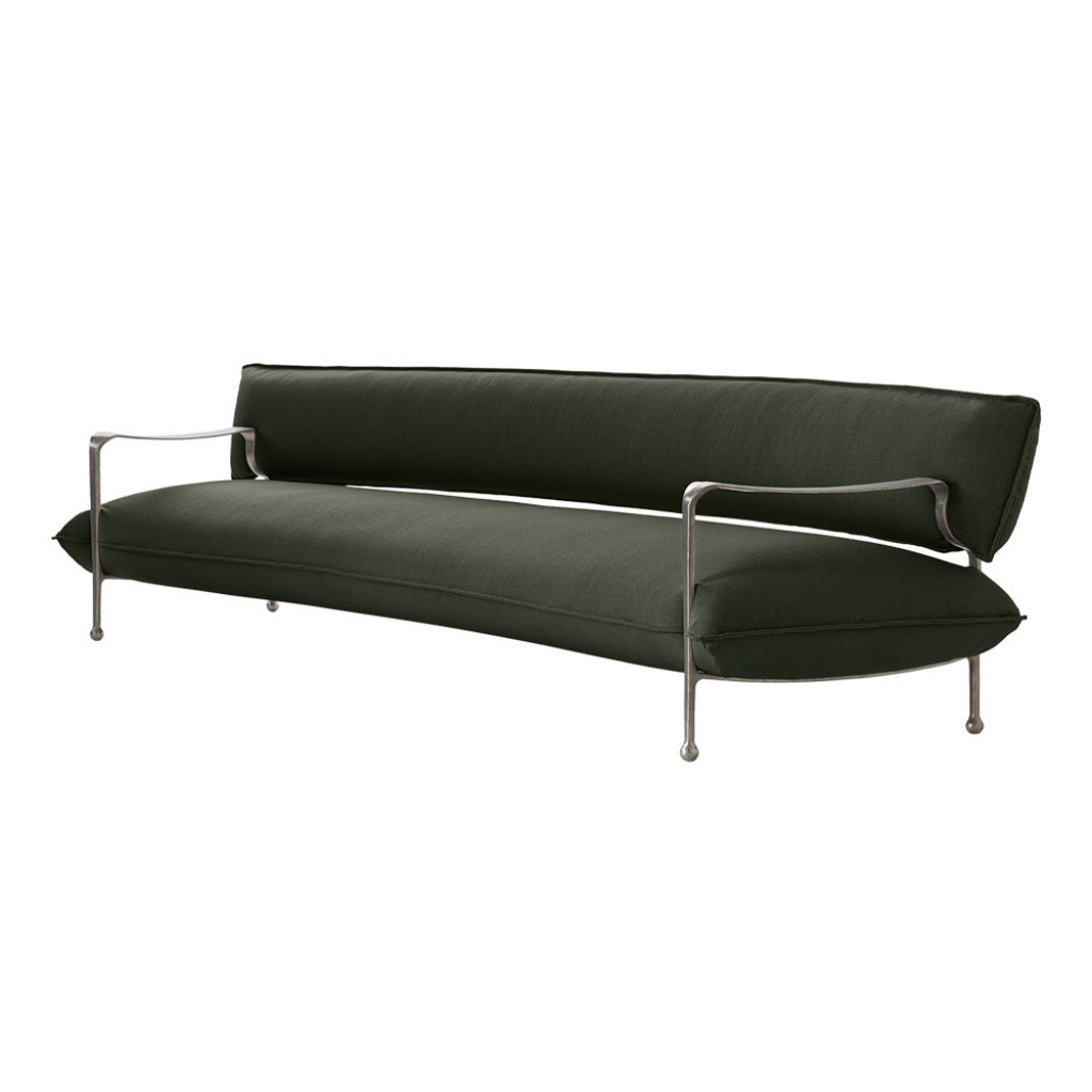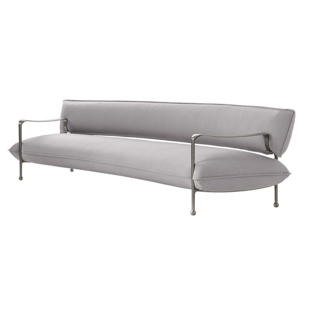 Canapea cu patru locuri. Materiale: cadru din bronz alb prelucrat. Perna pentru sezut/spatar din poliuretan expandat, cu husa detasabila din material textil (Torri Lana Rella, Limonta Indianskop, Kvadrat Vidar, Kvadrat Alle). Disponibila si perna pentru sezut.