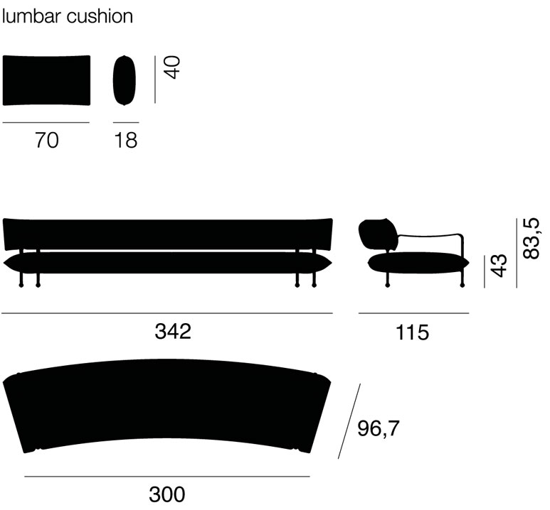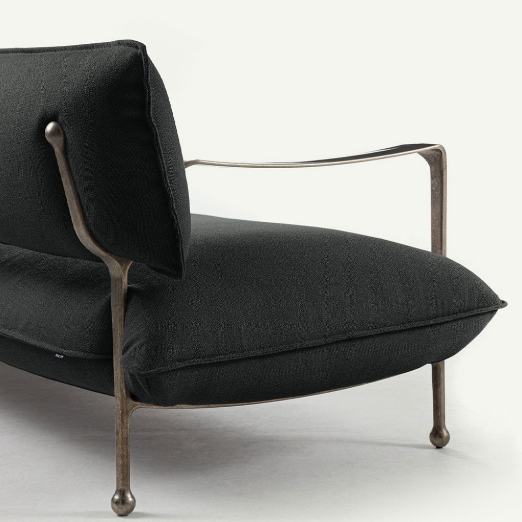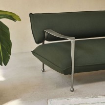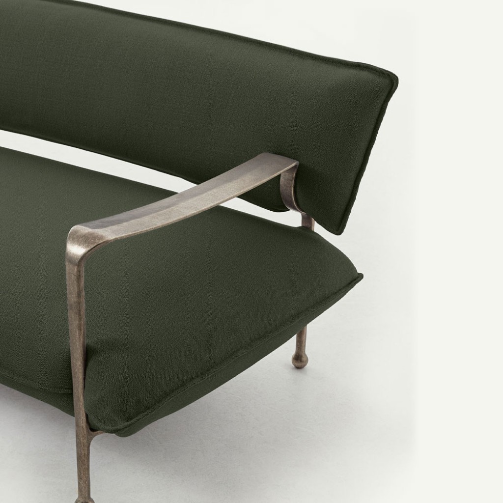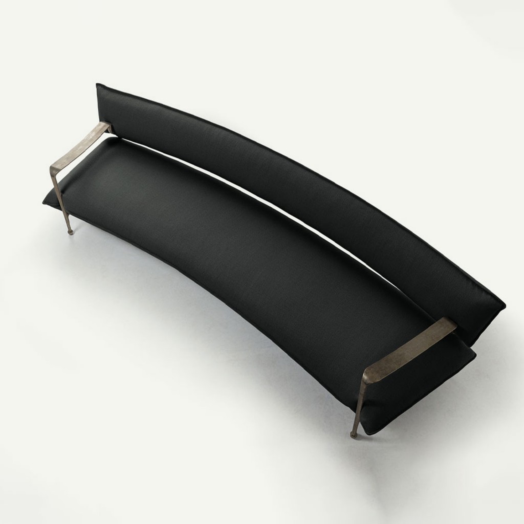 Canapea cu patru locuri. Materiale: cadru din bronz alb prelucrat. Perna pentru sezut/spatar din poliuretan expandat, cu husa detasabila din material textil (Torri Lana Rella, Limonta Indianskop, Kvadrat Vidar, Kvadrat Alle). Disponibila si perna pentru sezut.