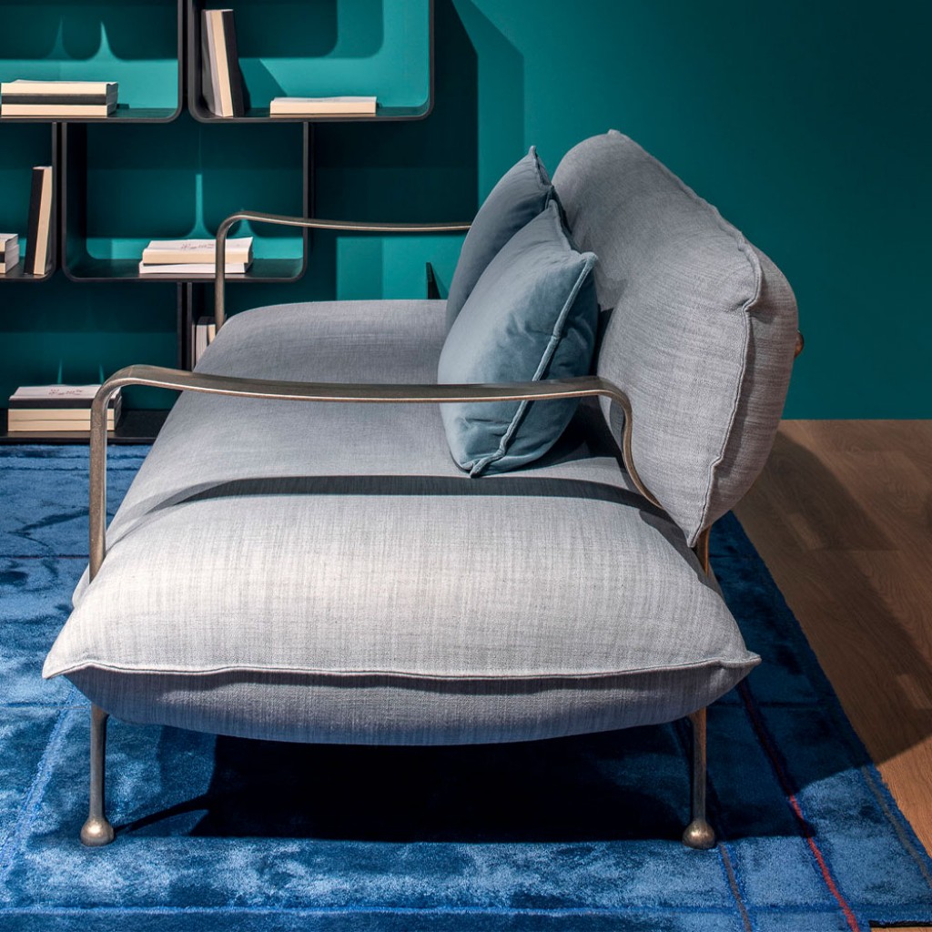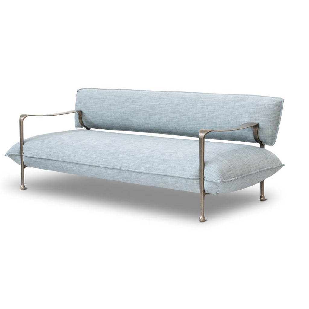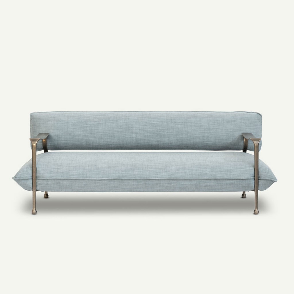 Canapea cu trei locuri. Material: cadru din bronz alb prelucrat. Perna pentru sezut/spatar din poliuretan expandat, cu husa detasabila din material textil (Torri Lana Rella, Limonta Indianskop, Kvadrat Vidar, Kvadrat Alle). Disponibila si perna pentru sezut.
