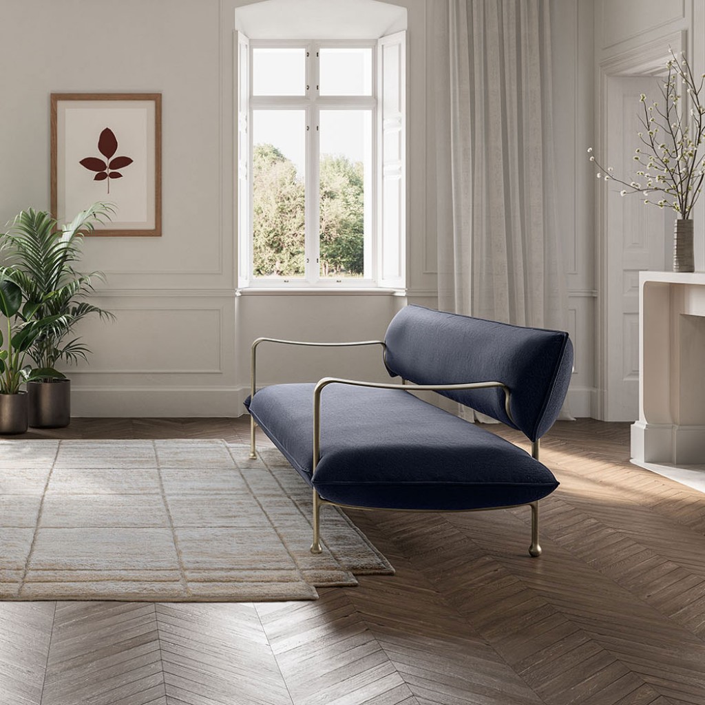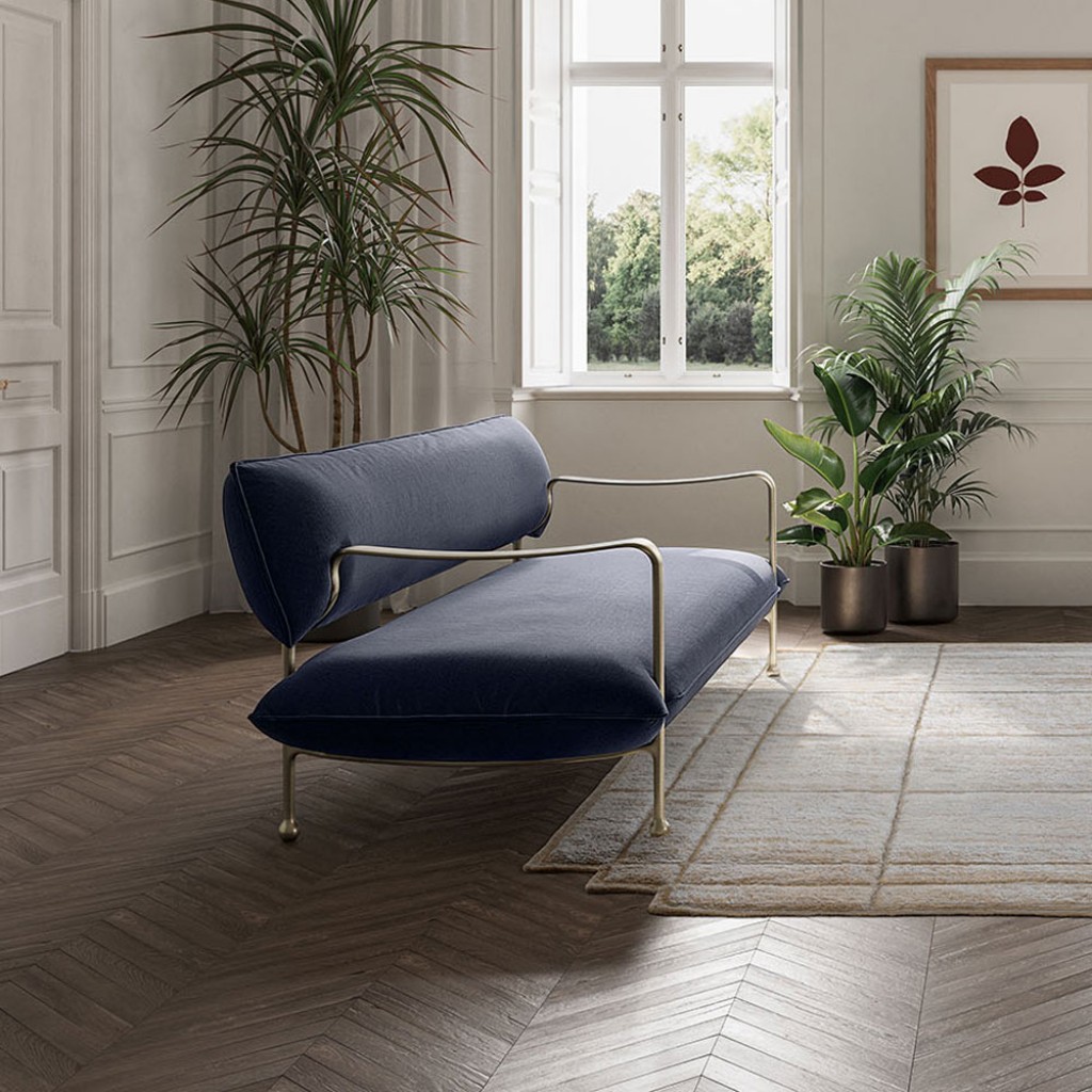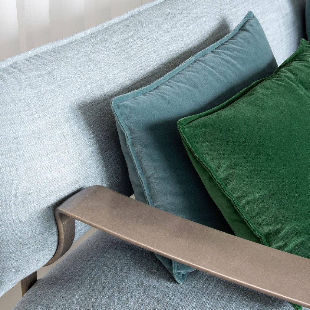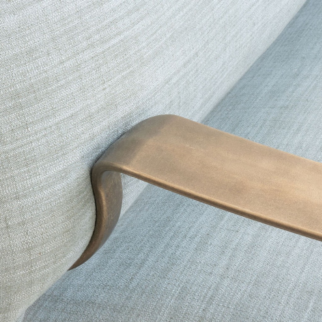 Canapea cu trei locuri. Material: cadru din bronz alb prelucrat. Perna pentru sezut/spatar din poliuretan expandat, cu husa detasabila din material textil (Torri Lana Rella, Limonta Indianskop, Kvadrat Vidar, Kvadrat Alle). Disponibila si perna pentru sezut.