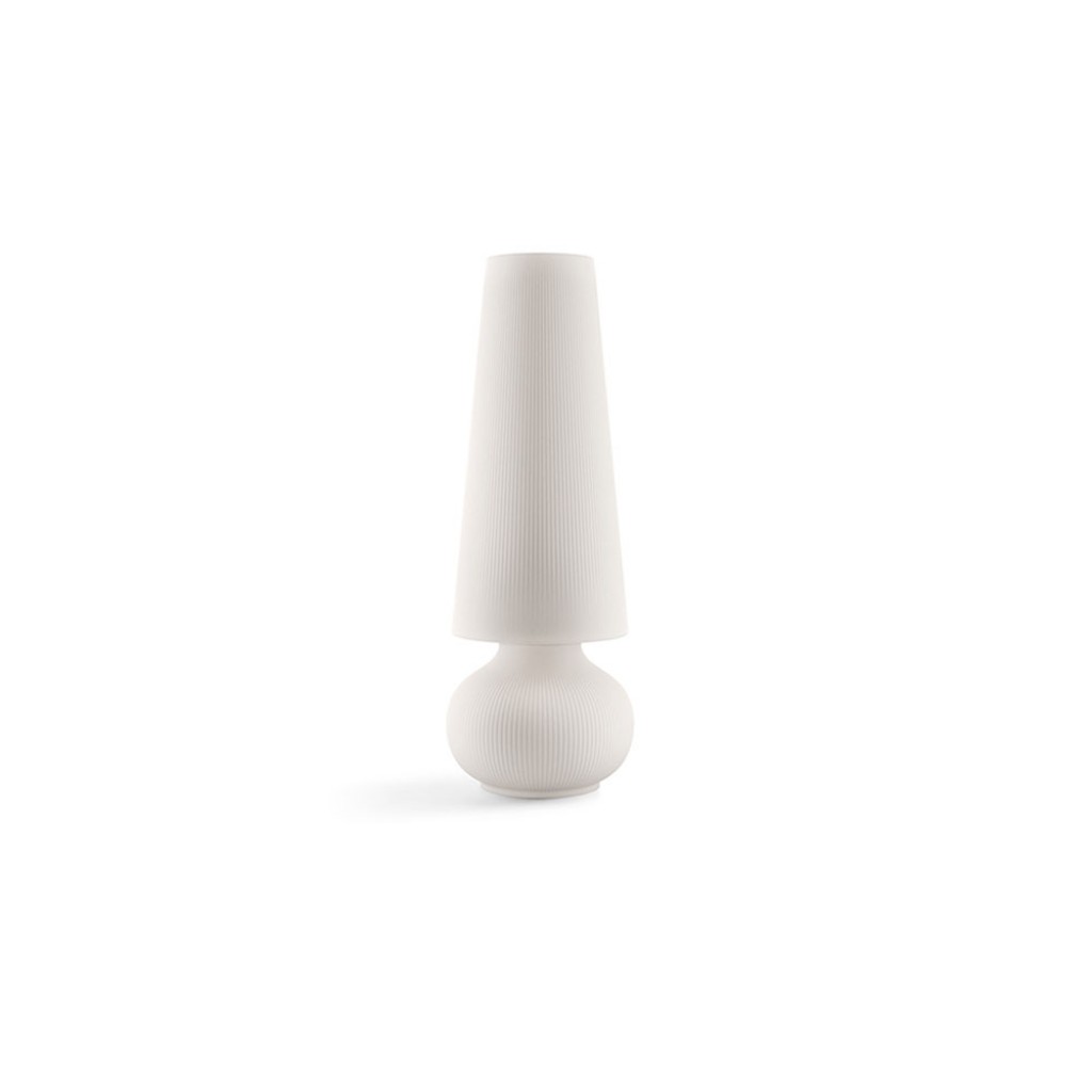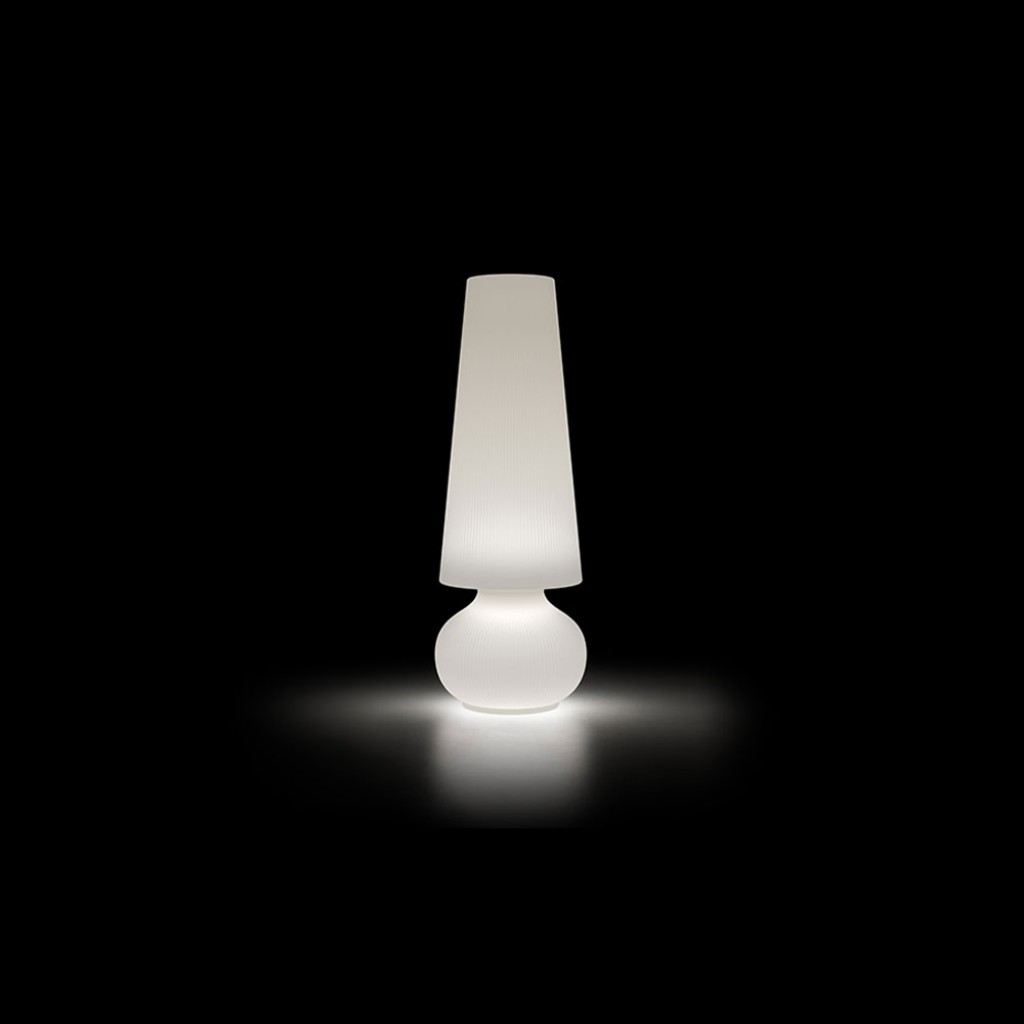 Cel mai bine vandut model al lampii Fade este prezentat acum intr-o dimensiune complet noua. Datorita proportiilor reduse si inaltimii de 140 cm, lampa Fade M poate fi amplasata cu usurinta atat in spatii contract, cat si rezidentiale, in exterior sau interior. Este definita de un contur vizual atragator si o textura dungata care pare sculptata, o caracteristica distinctiva a tuturor pieselor Fade.