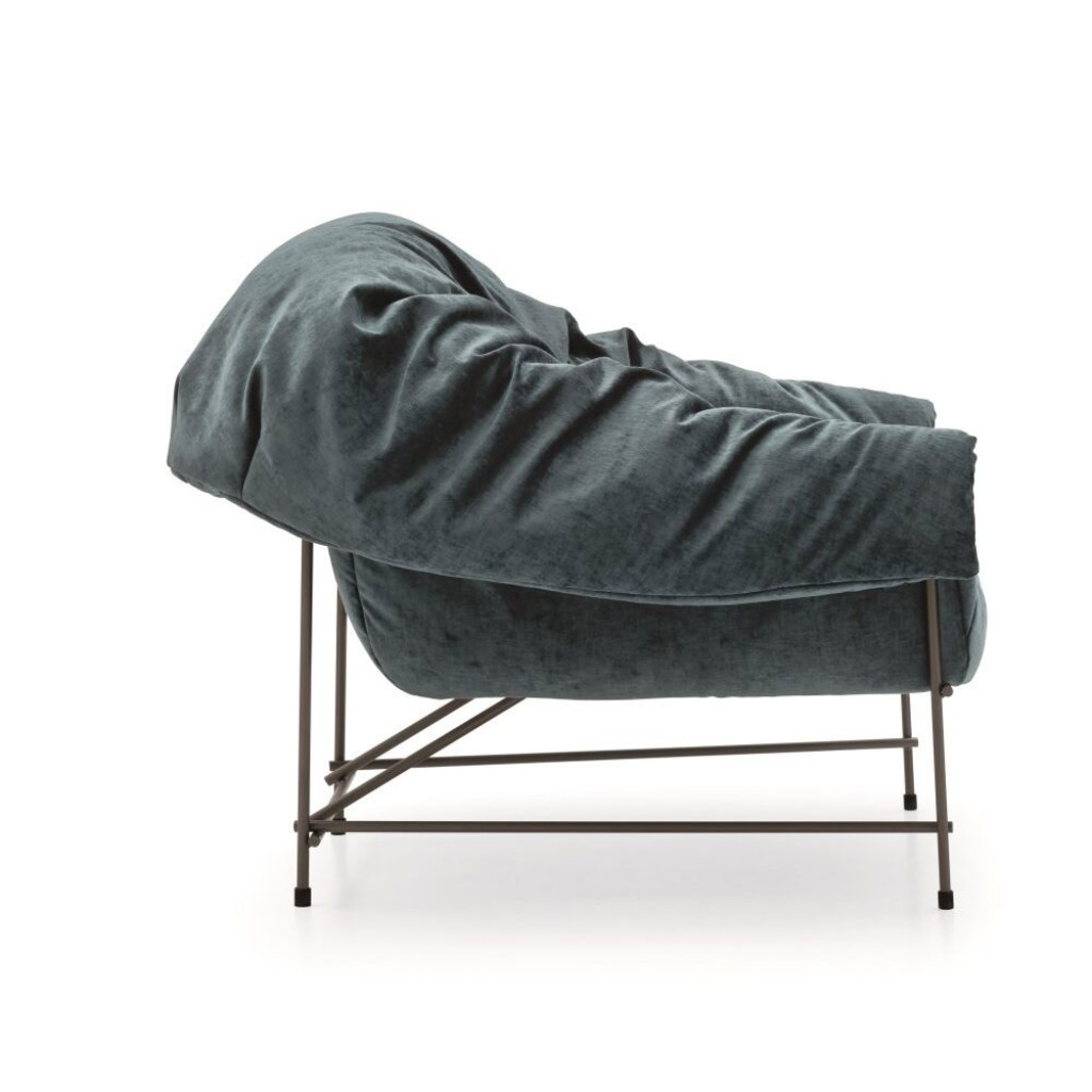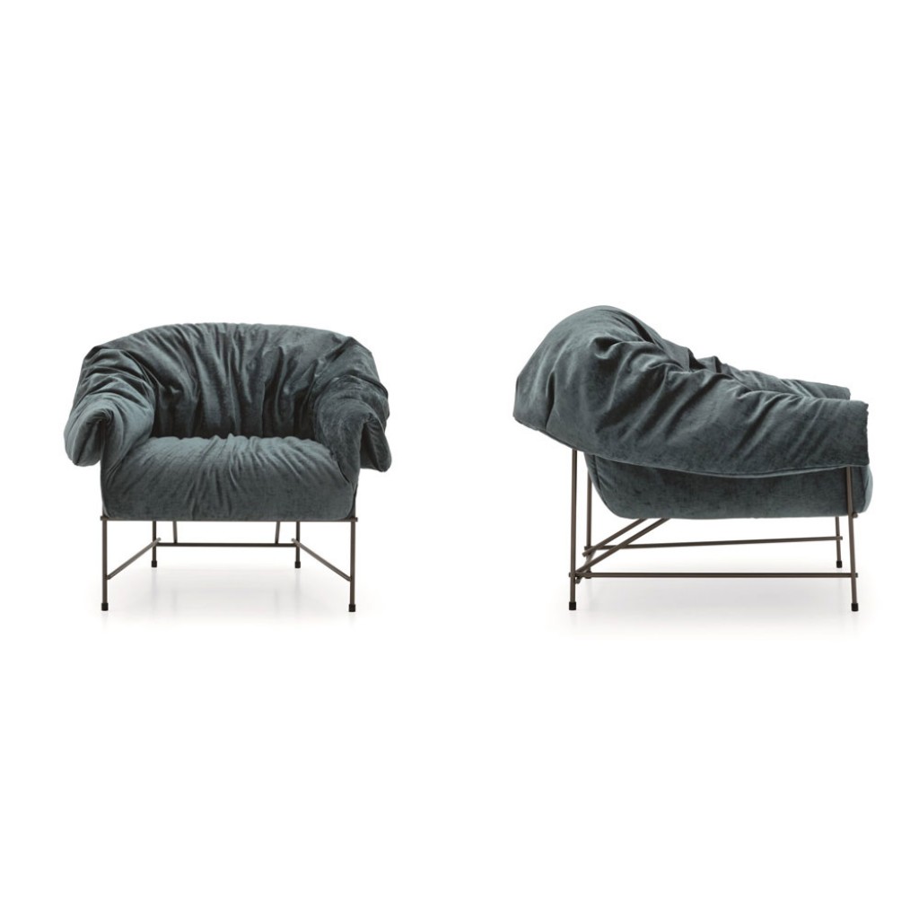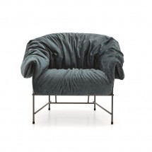 Fotoliul Octavia ofera o primire generoasa, datorita unei captuseli incretite si usor dezordonate ce ofera volum structurii metalice riguroase.