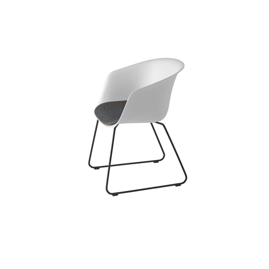 Fotoliu, corp inchis cu cadru din otel tip sanie. Sezut tapitat.