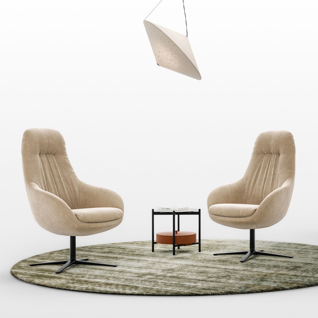 Fotoliul Flo se remarca prin echilibrul perfect intre volumele moi si formele esentiale. Tapiteria generoasa primeste corpul si transforma sezutul intr-un moment de relaxare autentica, creand un mic spatiu de liniste in interiorul ambientului. Structura si spatarul din spuma definesc profilul curat al fotoliului, in timp ce sezutul din poliuretan expandat ofera o senzatie de confort complet si invaluitor. Baza metalica rotativa permite o orientare usoara, facand din Flo o piesa dinamica si practica pentru utilizarea zilnica.