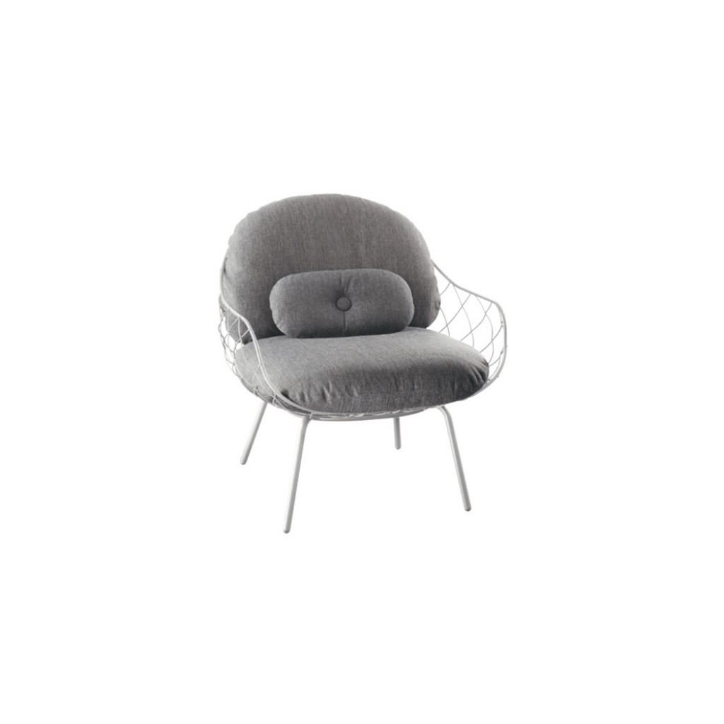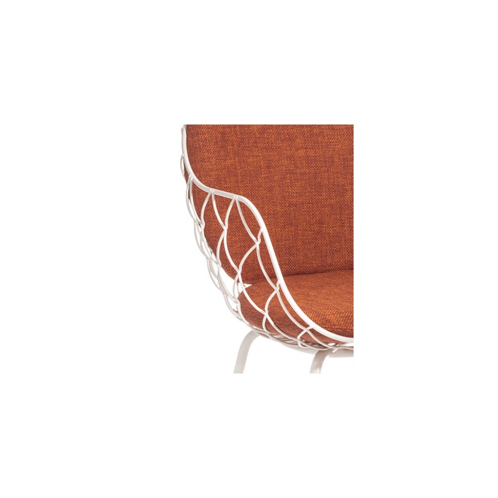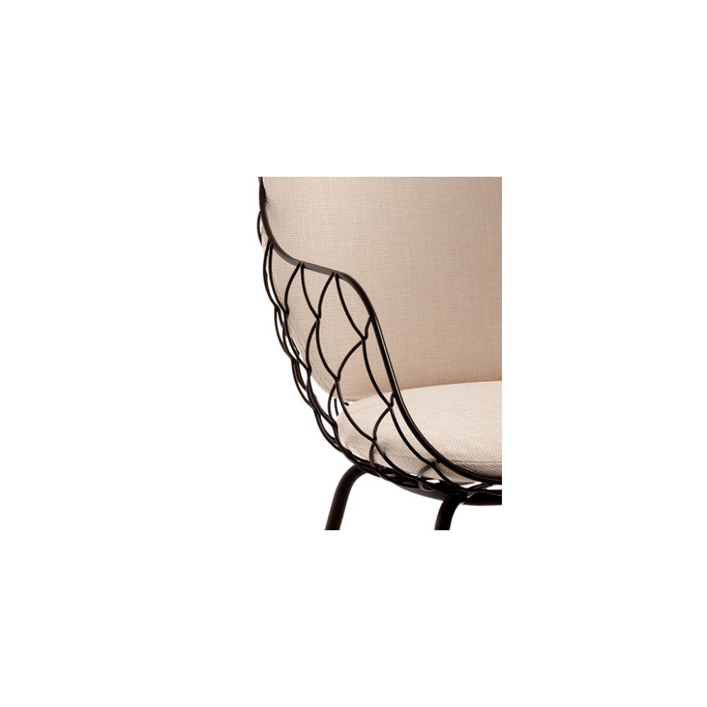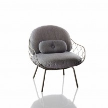 Cadru din tub de otel tratat cataforetic si vopsit cu pulbere de poliester. Scaun din tija de otel tratata cataforetic si vopsit cu pulbere de poliester. Perne sezut si spatar din poliuretan expandat cu husa detasabila din material textil (Polyhedra). Optional: perna de sprijin cu husa detasabila. Potrivit pentru utilizare in aer liber.