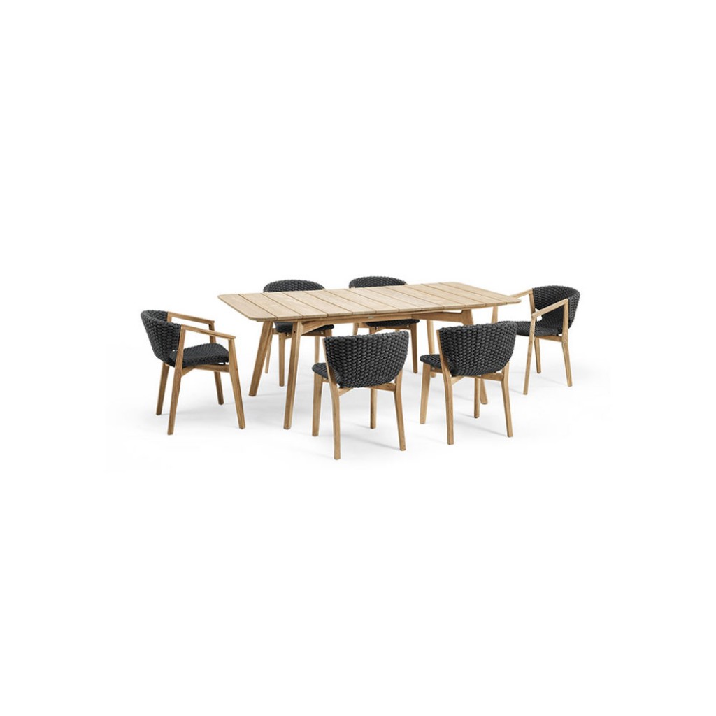 Colectia de mese Knit este realizata din lemn de tec sau mahon stromboli negru, fiind un element de decor elegant si rafinat.