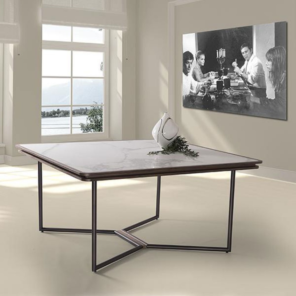Modelul de masa Duca are un cadru metalic si o suprafata din lemn, ceramica sau sticla termotratata. Simpla si eleganta, cu picioarele pozitionate la extremitati, este o garantie a confortul.. -