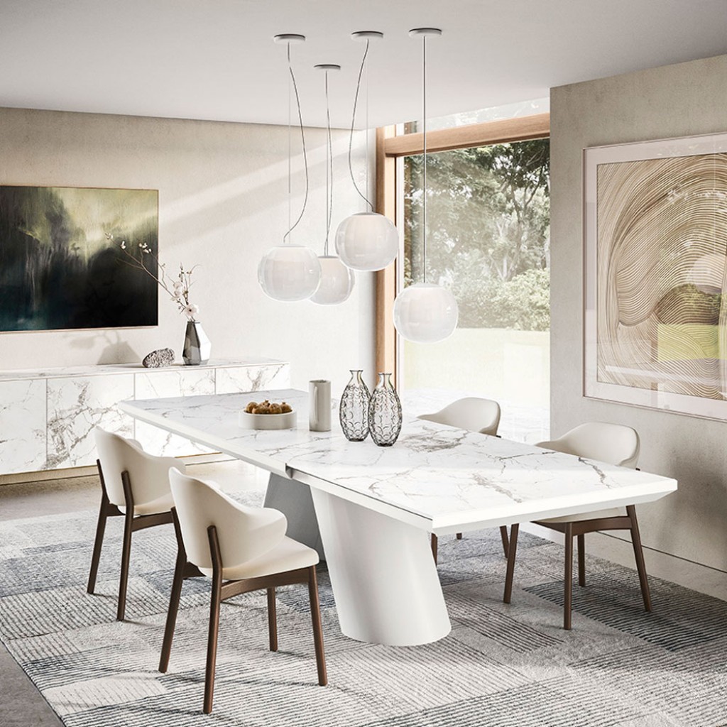 Icaro este o masa extensibila cu baza din lemn furnir si blat de ceramica. Este o masa robusta, versatila si eleganta, cu doua blaturi ce pot fi extinse individual.Designer - ArchirivoltoDim.. -