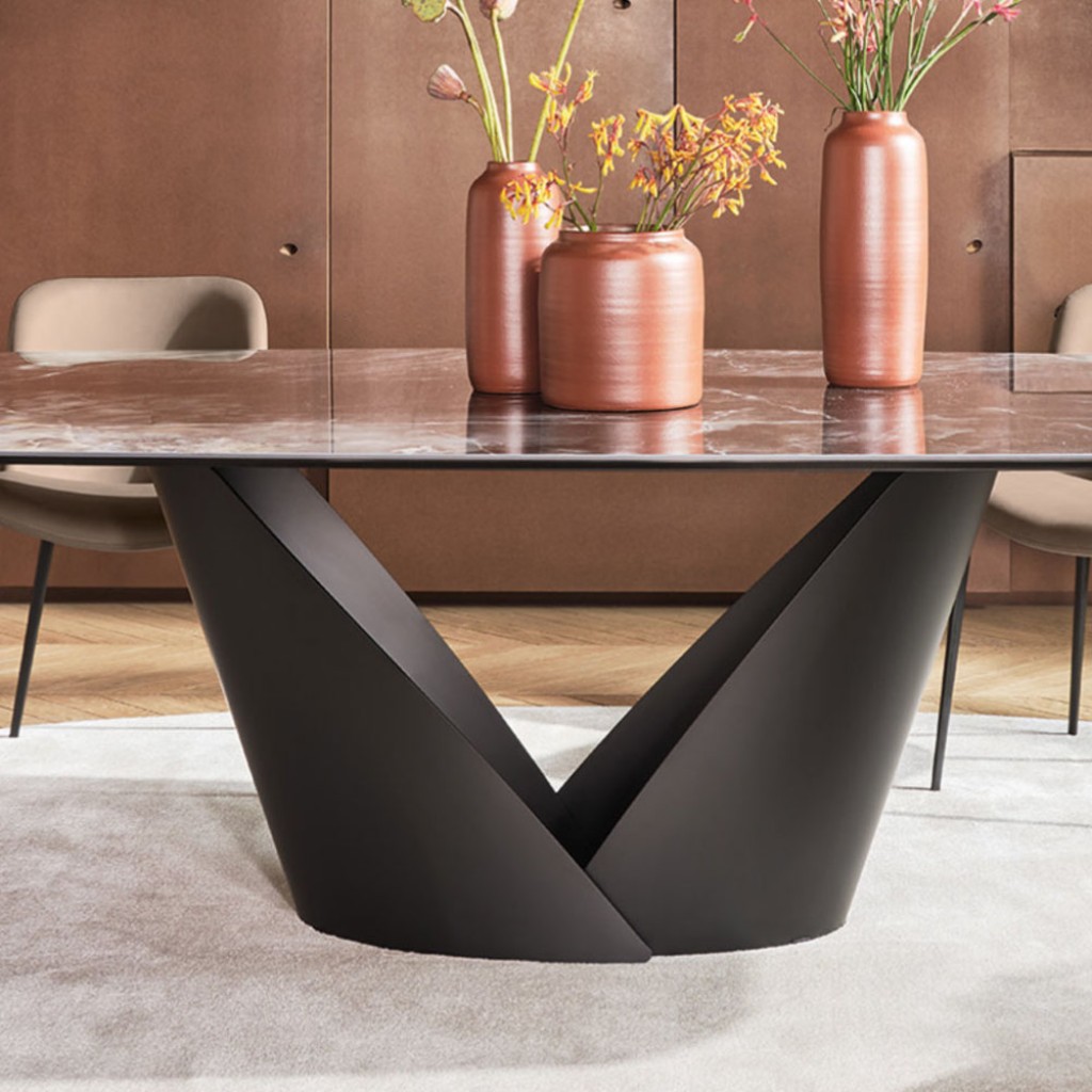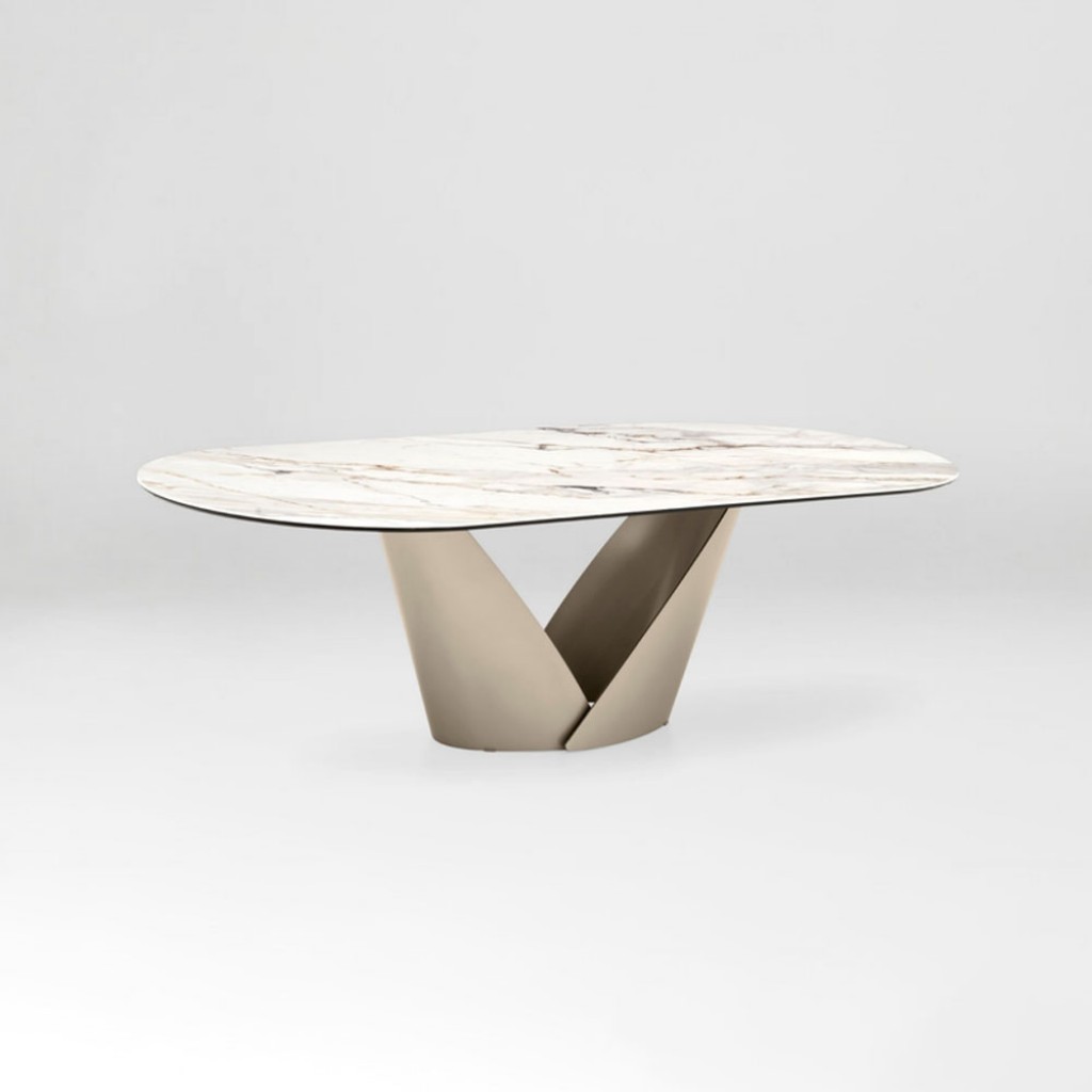 Cu o estetica eleganta, masa Apian adopta o abordare de design arhitectural si a fost realizata cu meticulozitate din materiale rafinate. Look-ul aerisit aminteste de o tabla de metal curbat.. -