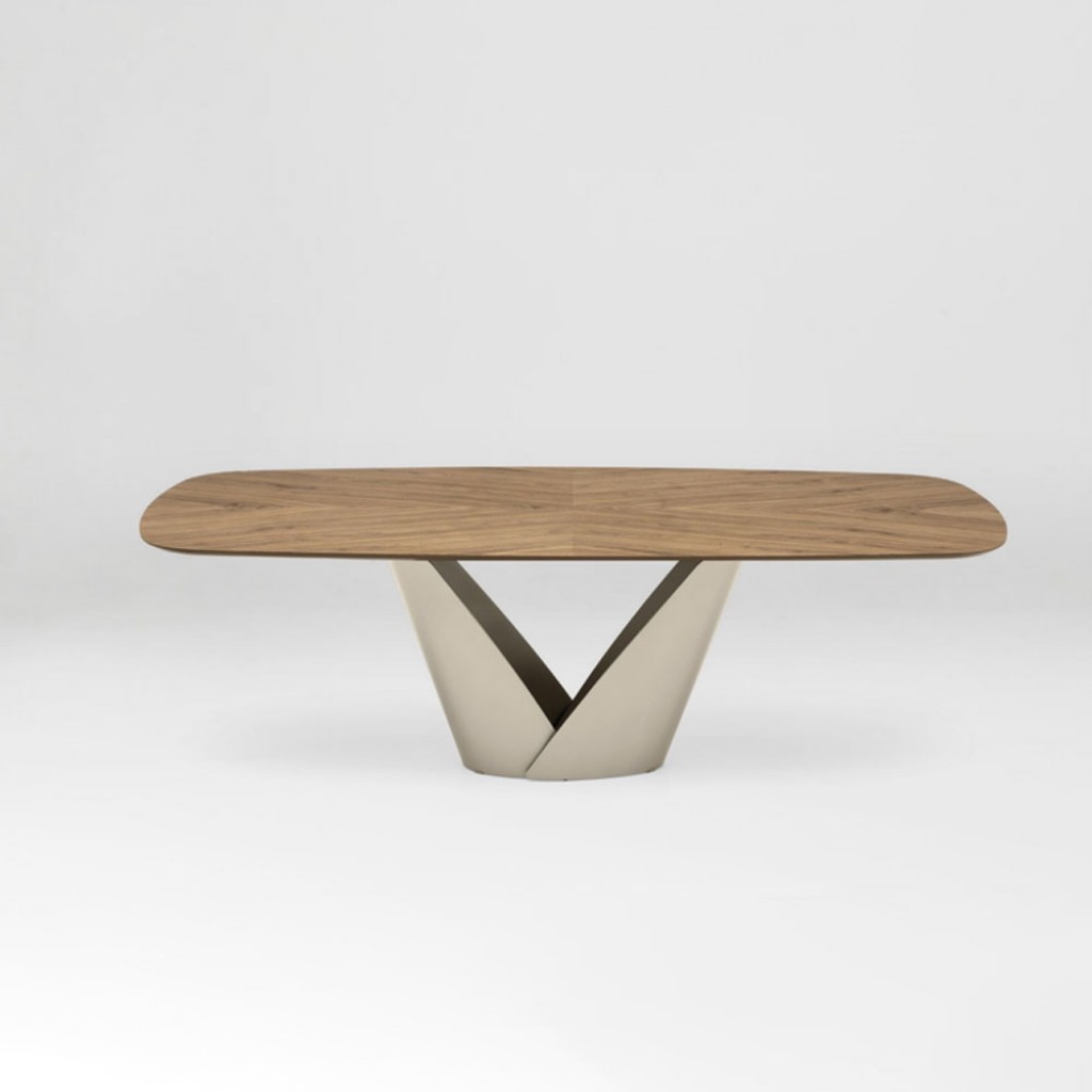 Cu o estetica eleganta, masa Apian adopta o abordare de design arhitectural si a fost realizata cu meticulozitate din materiale rafinate. Look-ul aerisit aminteste de o tabla de metal curbat.. -
