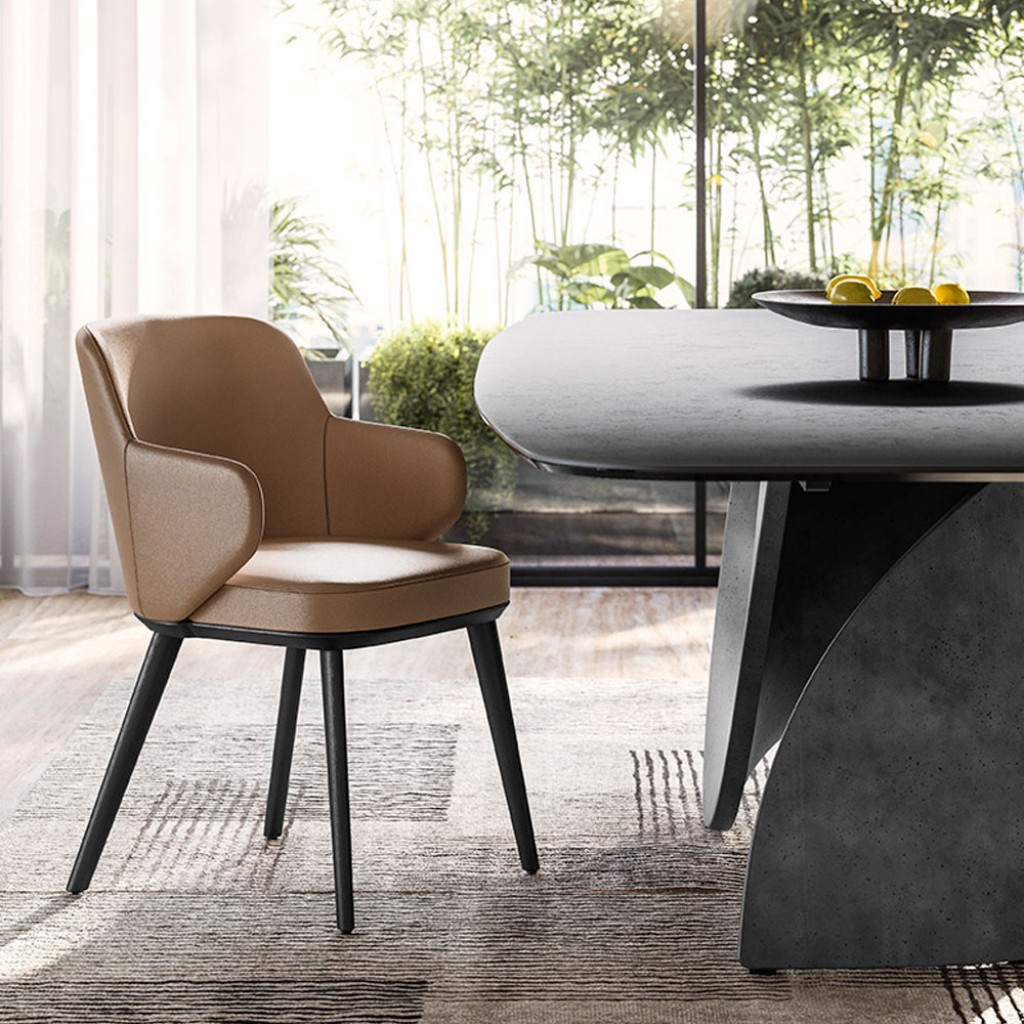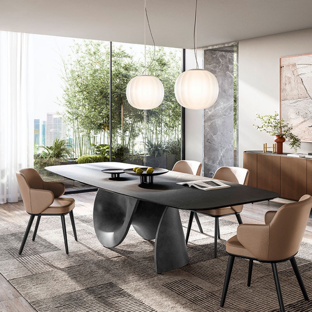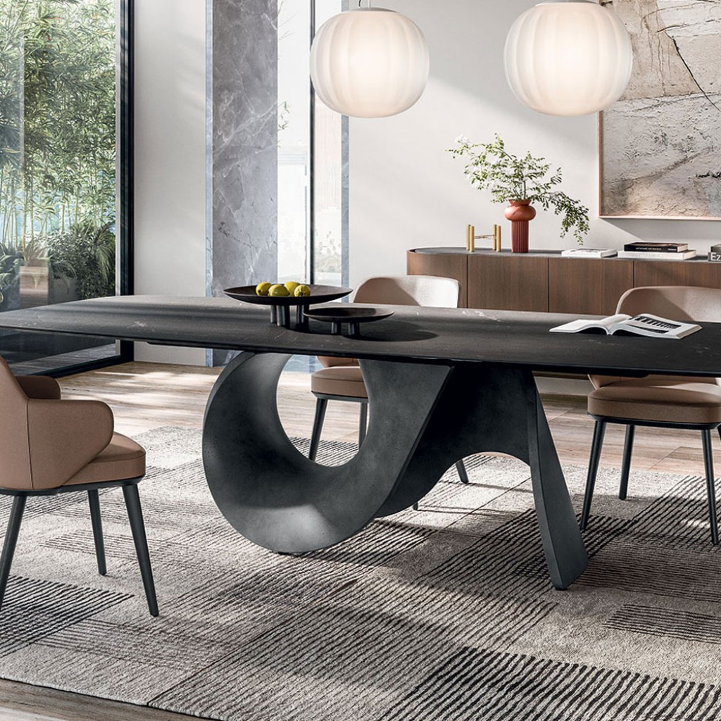 Cu o estetica eleganta, masa Apian adopta o abordare de design arhitectural si a fost realizata cu meticulozitate din materiale rafinate. Look-ul aerisit aminteste de o tabla de metal curbat.. -
