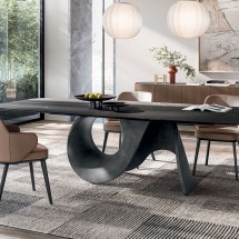 Masa extensibila cu blat ceramic, cu continuitate a venaturii intre blat si extensii, pentru un efect estetic rafinat si unitar. Sistemul de deschidere si inchidere este prevazut cu mecanism.. -