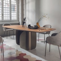 Twins este o masa cu un mare impact vizual datorita bazei, alcatuita din doua elemente de tabla curbata si turnata care, ca doua aripi, fac blatul sa-si ia zborul vizual. Exista multe finisaje disponibile, permitandu-va sa interpretati masa intr-un mod clasic sau modern.