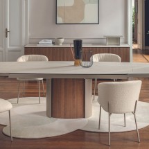 Masa Yoroi este inspirata de armura antica a samurailor. Baza centrala, cu caneluri verticale si insertii din lemn, are o prezenta puternica, contrastand cu simplitatea blatului oval. Datorita acestor caracteristici si finisajelor selectate, Yoroi exprima echilibrul perfect intre istorie si spirit contemporan.