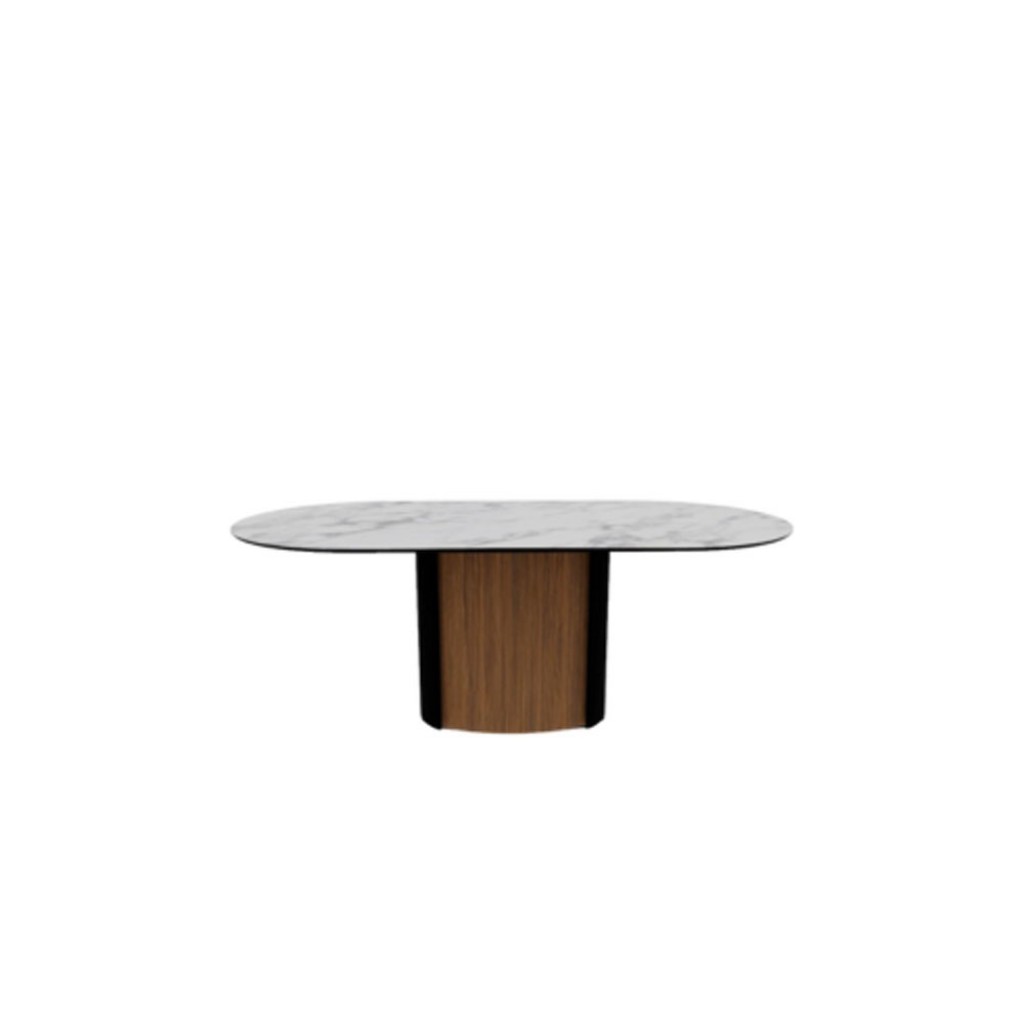 Cu o estetica eleganta, masa Apian adopta o abordare de design arhitectural si a fost realizata cu meticulozitate din materiale rafinate. Look-ul aerisit aminteste de o tabla de metal curbat.. -