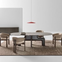 Formele captivante si rafinate dau viata unei compozitii de masa si scaun, imbracat in piele sau stofa. Un intreg cu o aroma originala si clasica in acelasi timp, ca un peisaj urban care uneste armonios suflete diferite.