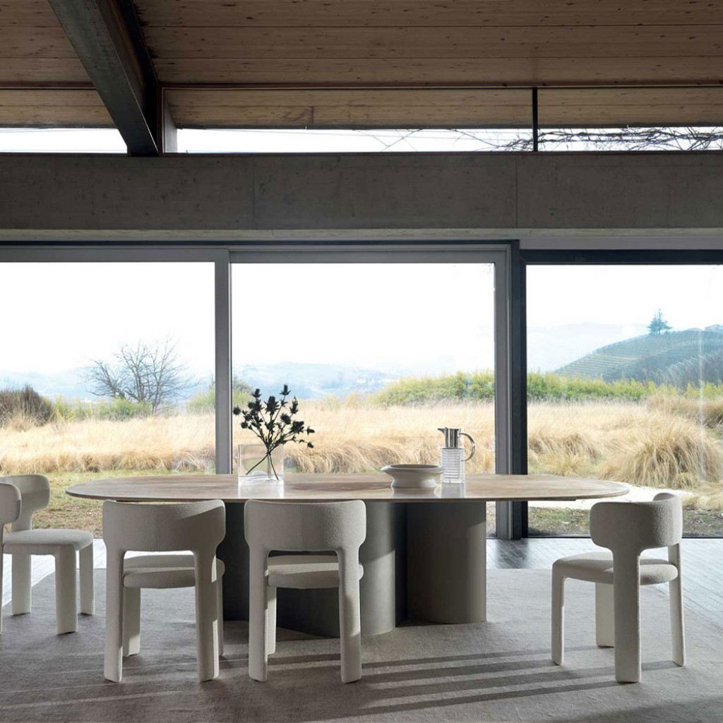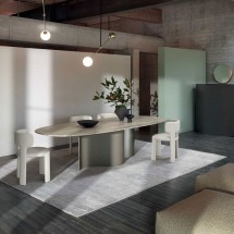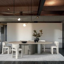 Daca eleganta este facuta din echilibru, masa Doon este intruchiparea sa perfecta. Proiectata de Stefano Spessotto, aceasta s-a nascut din ideea de a combina armonios doua materiale distincte. Modulele care alcatuiesc baza mesei sunt doua elemente identice in finisaje diferite, care se suprapun. Rezultatul este un joc de echilibre vizuale care se schimba in functie de punctul de vedere, generand forme mereu noi si in continua evolutie.