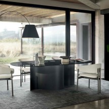 Masa Yoroi este inspirata de armura antica a samurailor. Baza centrala, cu caneluri verticale si insertii din lemn, are o prezenta puternica, contrastand cu simplitatea blatului. Datorita ac.. -