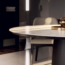 Cod: T403 - Designer: Luca Tonelli & Davide Carlesi150 este noua dimensiune a perfectiunii. Diametrul ideal pentru un blat ceramic cu un aspect prestigios care cuprinde trei mese din col.. -