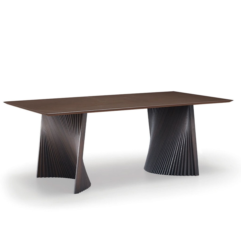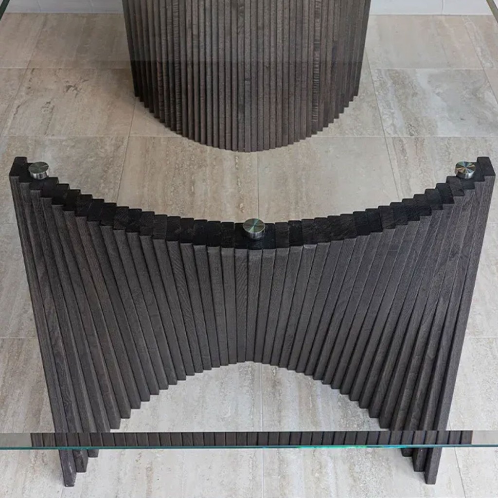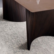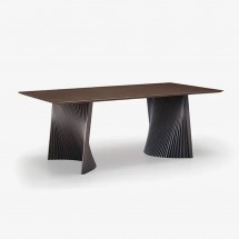 Aceasta este o propunere care va avea cu siguranta un impact: Bow se invarte in jurul contrastului dintre lemnul de frasin, folosit manual pentru a crea fasiile celor doua picioare ale mesei, si materialele pretioase ale blatului. O masa de designer ideala pentru spatii de locuit elegante si sofisticate, dar si pentru sali de intalnire in care oaspetii sunt primiti intr-un cadru cald, dar formal.