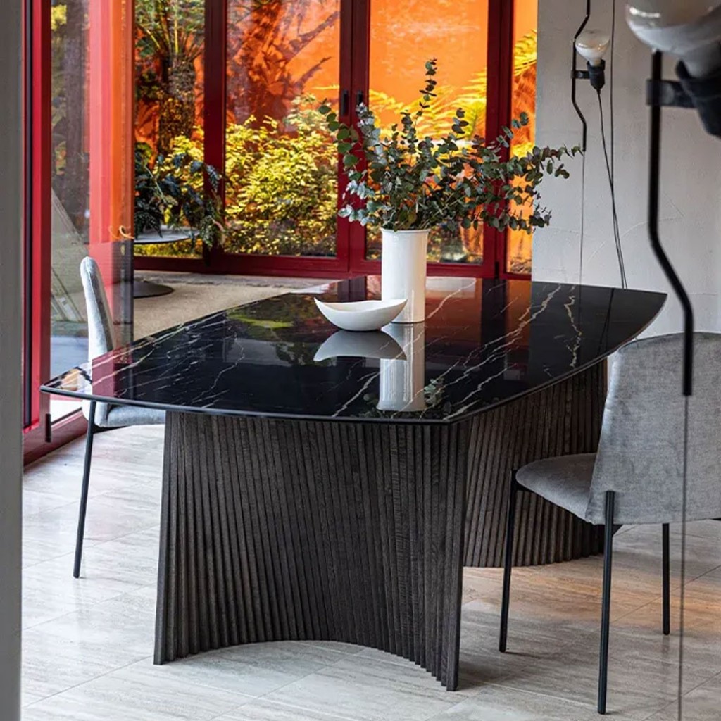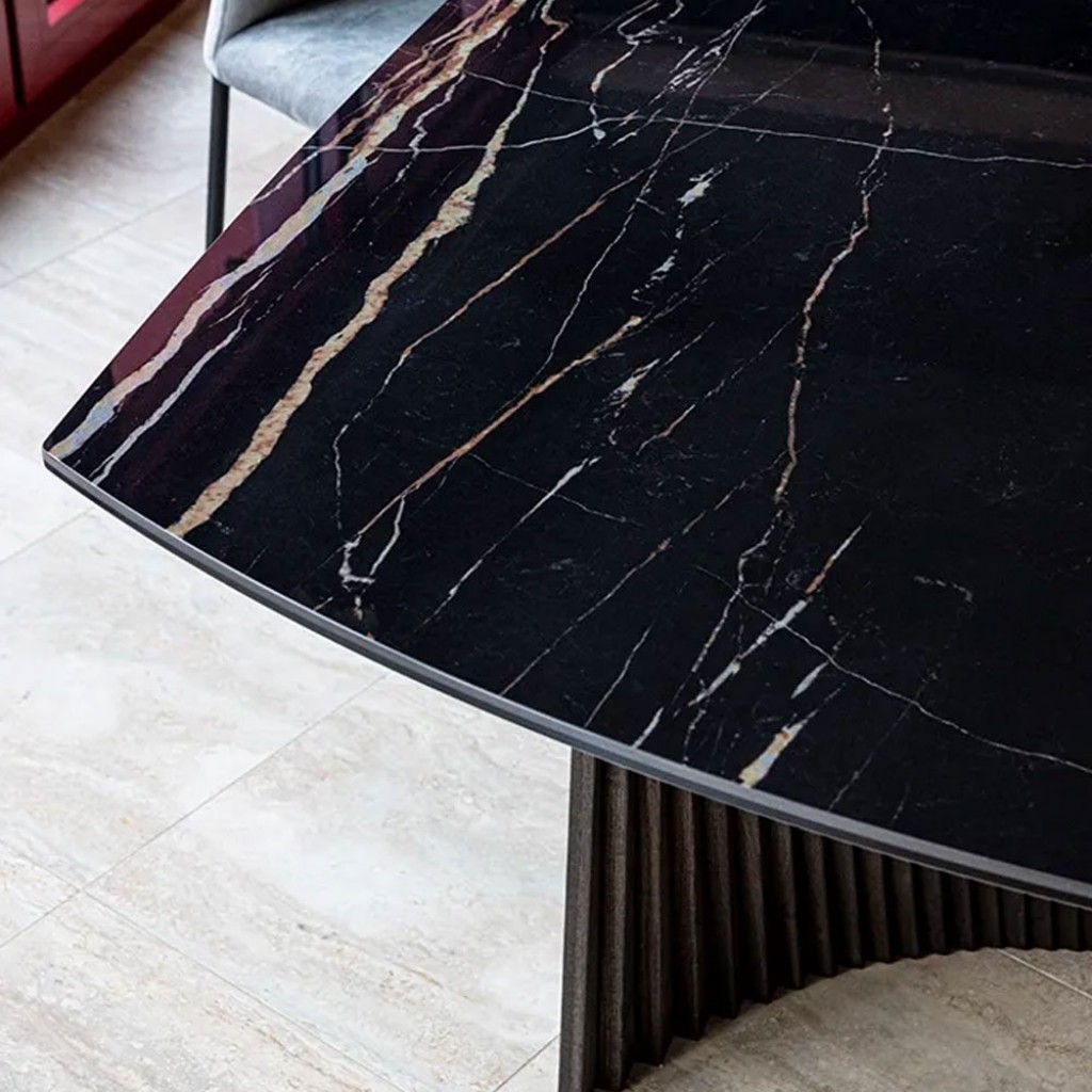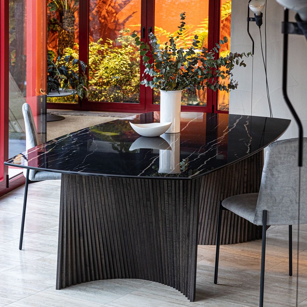 Cod: T403 - Designer: Luca Tonelli & Davide Carlesi150 este noua dimensiune a perfectiunii. Diametrul ideal pentru un blat ceramic cu un aspect prestigios care cuprinde trei mese din col.. -