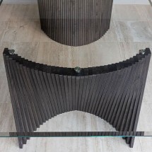 Flow face parte din colectia Wave: o masa consola de designer cu un impact vizual puternic, avand o baza realizata manual din fasii de lemn masiv de frasin. Suprafata sa in forma de semiluna.. -