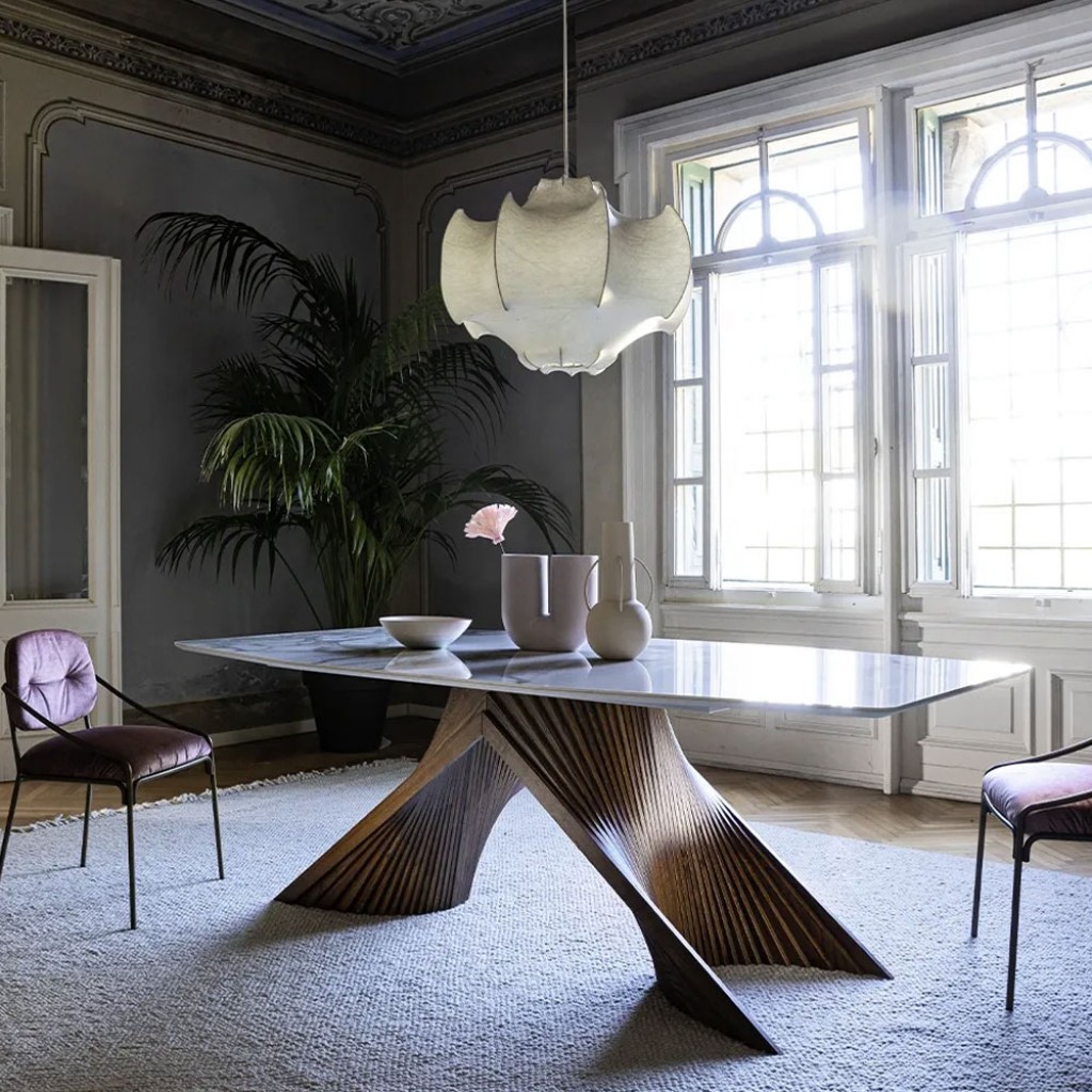 O masa de designer inspirata de farmecul naturii: baza mesei, realizata din lemn de frasin, aminteste de forma unei radacini, exprimand in acelasi timp forta si dinamismul. Un design esentia.. -