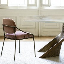 Twins este o masa cu un impact vizual deosebit datorita bazei sale, alcatuita din doua elemente de tabla curbate si turnate care, asemenea a doua aripi, fac ca blatul sa se ridice vizual. Su.. -