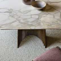 O masa proeminenta, conceputa pentru a fi piesa centrala in spatiul de locuit contemporan. Calla are o baza care seamana cu o floare - robusta, dar usoara, este alcatuita din doua lame metal..