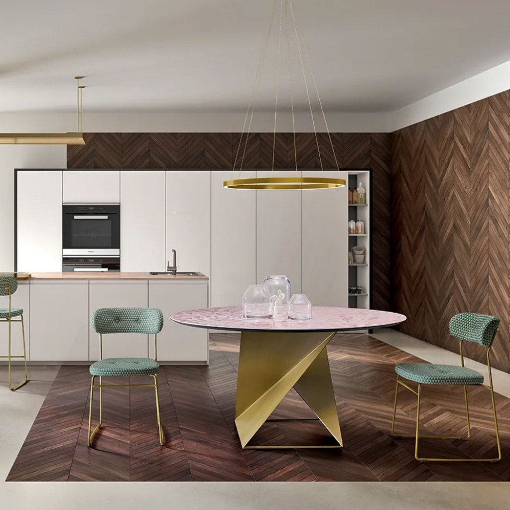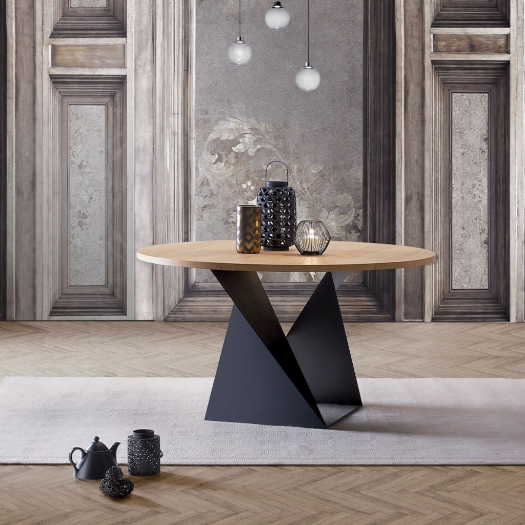 Masa de designer Cube este o creatie eleganta, armonioasa si sofisticata: un blat rotund clasic si extensibil este completat de o baza moderna, realizata prin indoirea unei singure foi de metal. Metalul, prelucrat cu maiestrie, adauga dinamism si fluiditate unei mese unde formele si materialele se imbina pentru a crea o piesa de design unica, capabila sa imbogateasca orice spatiu. Perfecta pentru living si bucatarie.
