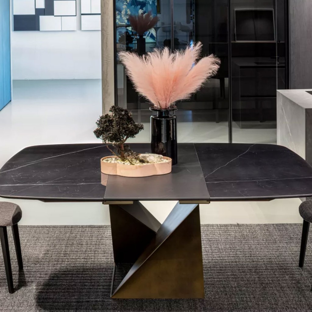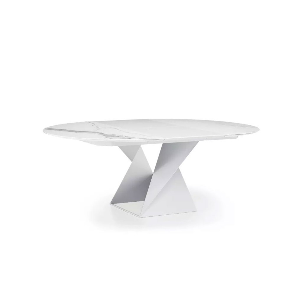 Cartesio este o masa cu un blat eliptic din ceramica asezat pe un cadru original de sustinere a greutatii din metal compus din patru elemente dreptunghiulare "V" independente. Cartesio dispu.. -