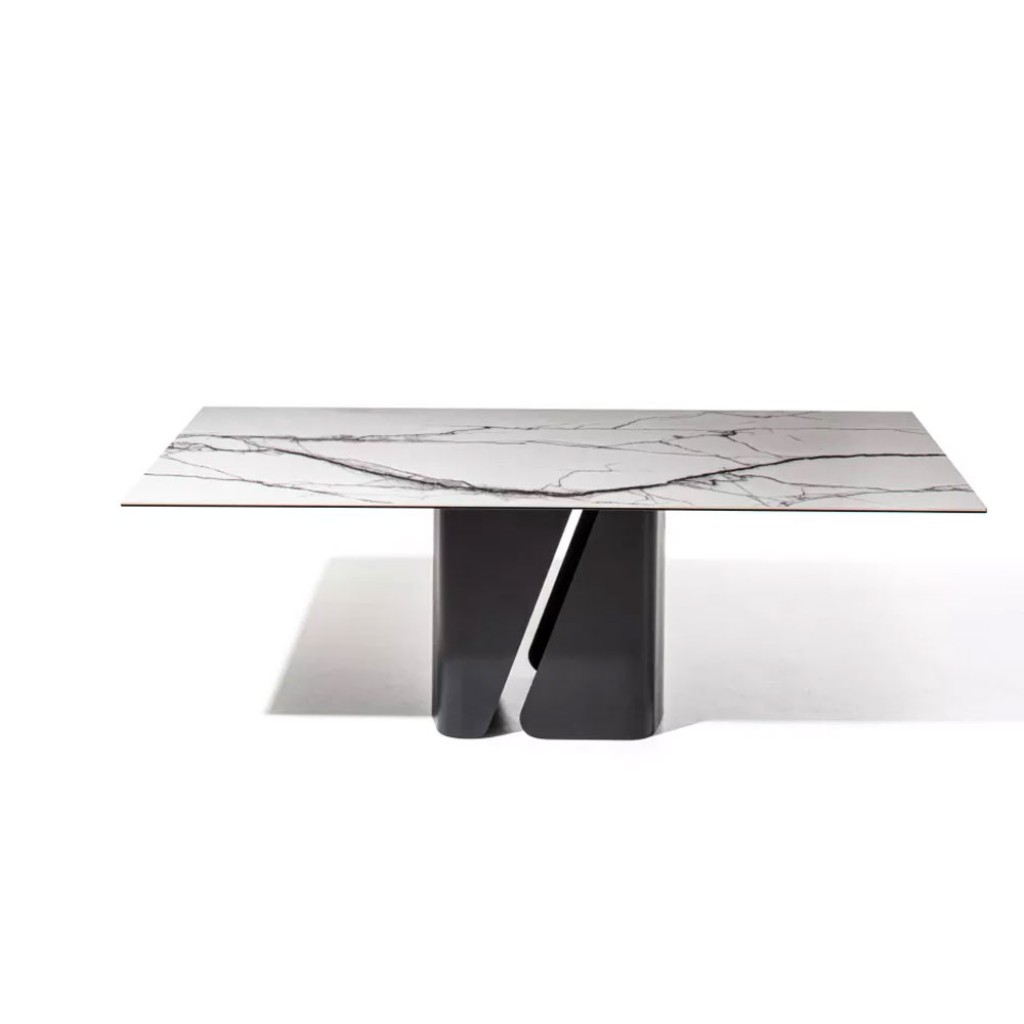 Cu o estetica eleganta, masa Apian adopta o abordare de design arhitectural si a fost realizata cu meticulozitate din materiale rafinate. Look-ul aerisit aminteste de o tabla de metal curbat.. -
