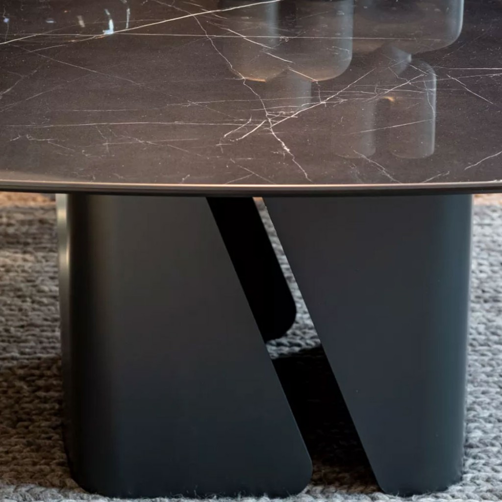 Dino este o masa de designer pentru zona de living. Baza sa, realizata din metal lacuit, este compusa din doua elemente simetrice si opuse, care creeaza o unitate armonioasa, solida si inedita. Masa este disponibila in diverse dimensiuni si forme ale blatului, oferind o varietate larga de finisaje. Datorita materialelor de inalta calitate si atentiei la detalii, aceasta masa se incadreaza perfect in spatii in care frumusetea si rafinamentul sunt esentiale.