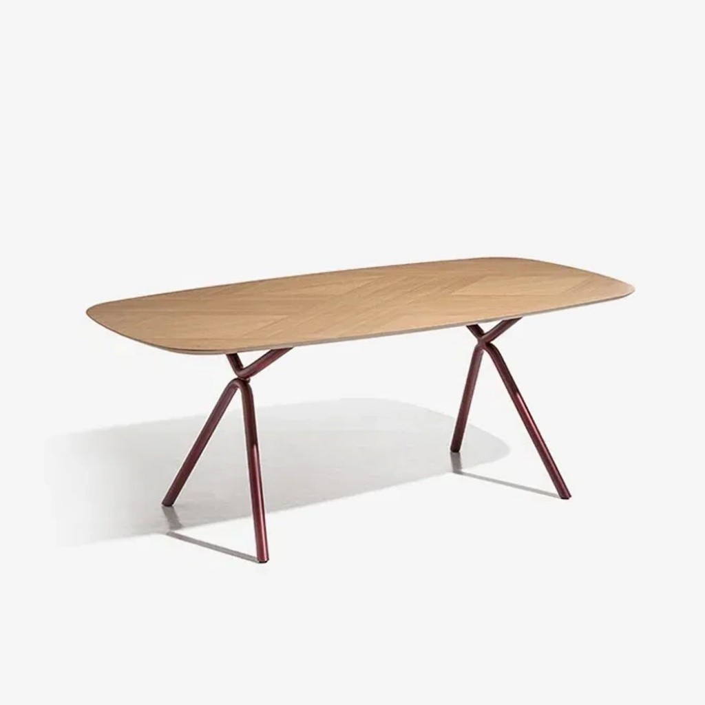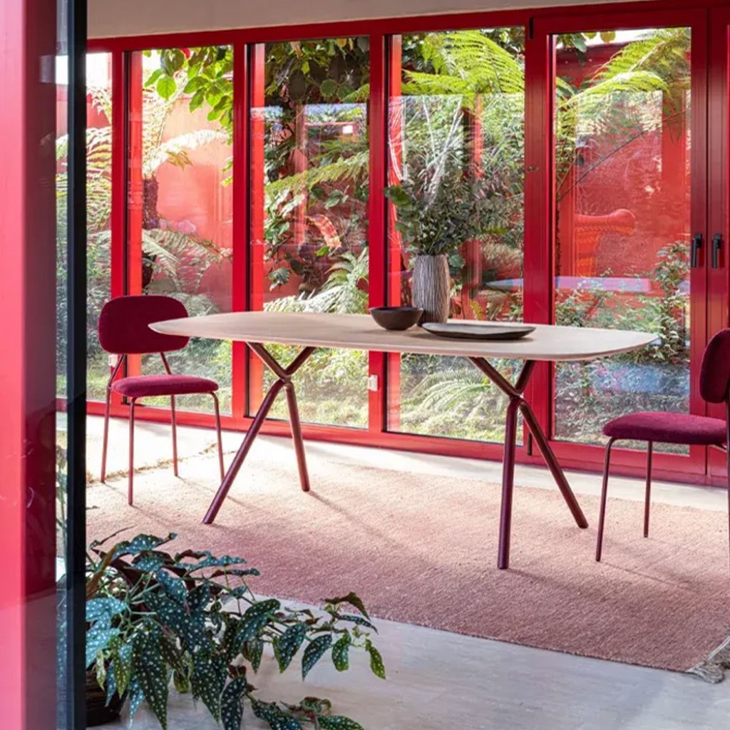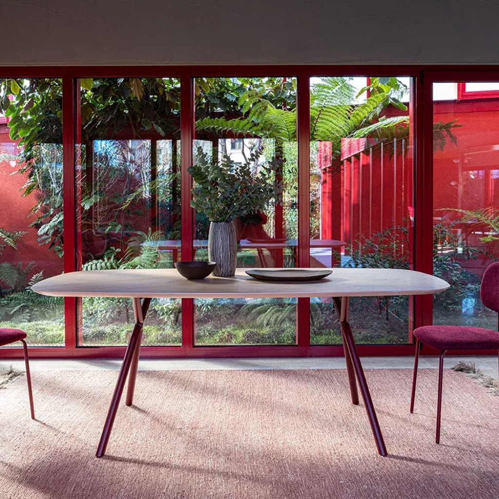 Masa pentru dining Levante combina lemnul cu metalul si sticla. Grinzile din aluminiu creeaza un efect de culoare spectaculos iar extensia mesei se poate realiza din partile sale laterale, p.. -