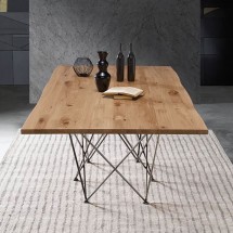 Gate e o masa cu caracter puternic, baza metalica si suprafata din lemn. Are un sistem de extindere simplu, ascuns in cadru, cu ajutorul unei rame. Picioarele raman in marginile mesei astfel.. -