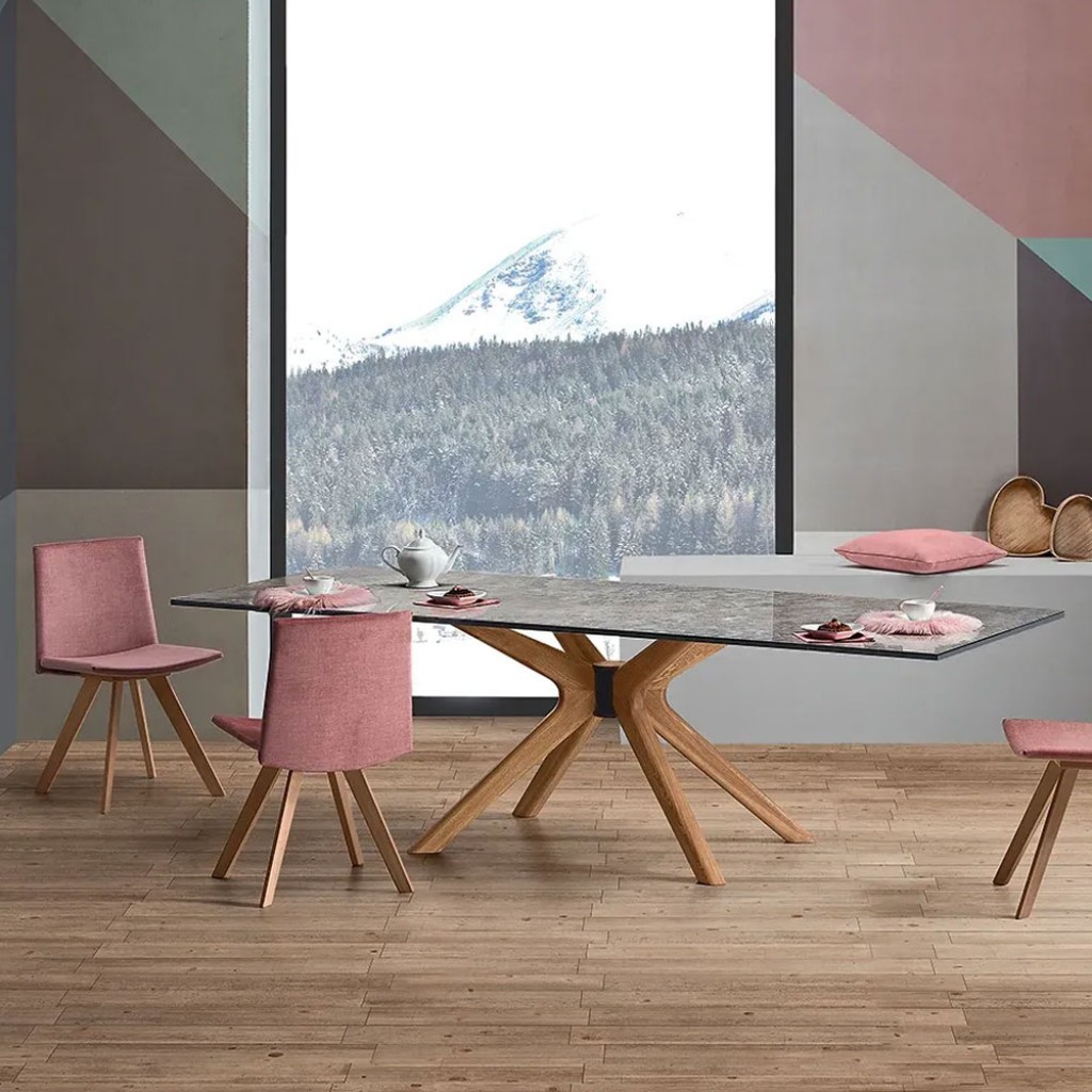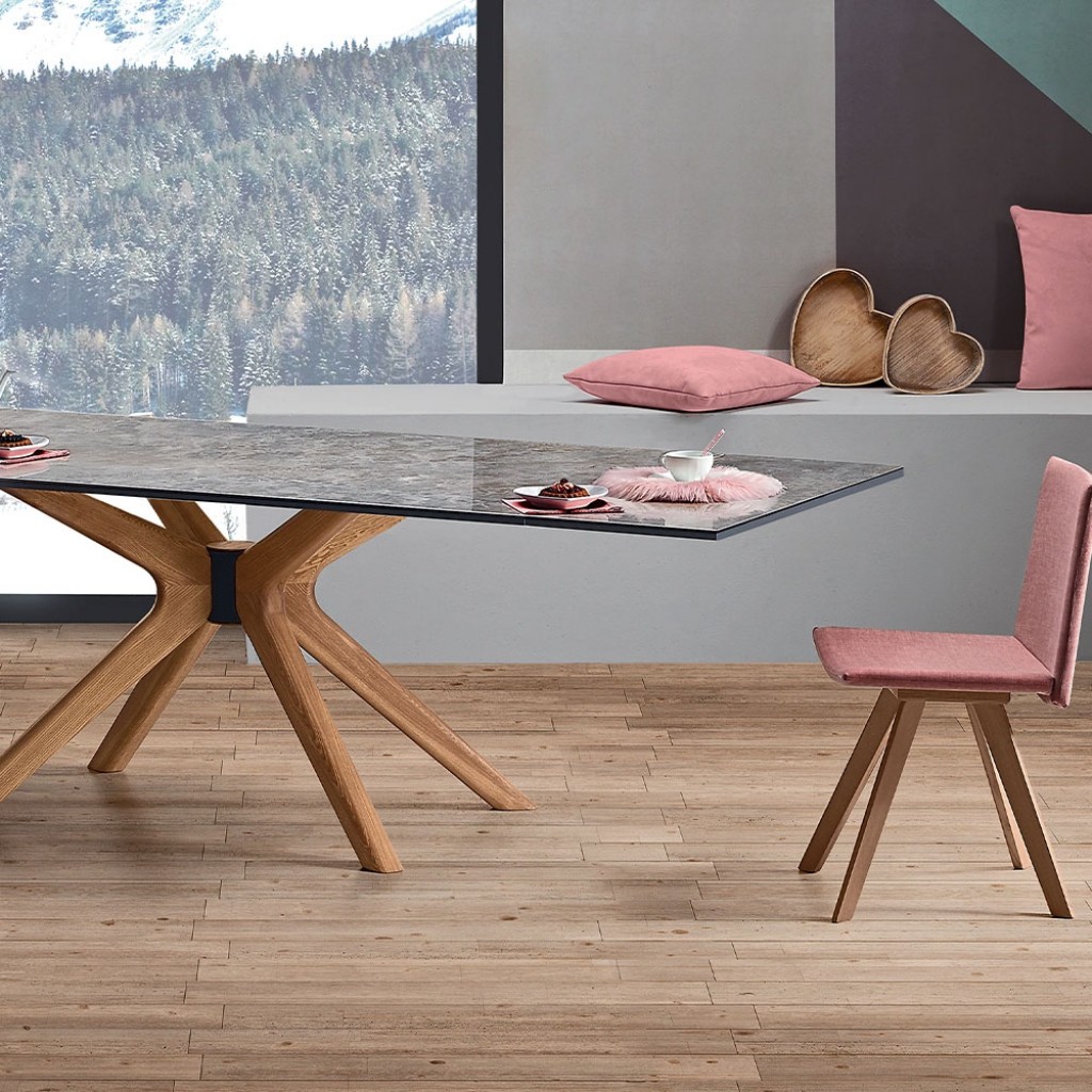 Cross este un model de masa disponibila cu un cadru din lemn tratat termic cu finisaje de nuc, frasin sau pori de coke.Dimensiuni - Noir DesirF - L 120 X P 120 X H 76F - L 140 X P 140 X H 76.. -
