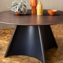 O masa sofisticata si deosebit de unica: baza acestei creatii este un trunchi de con divizat in patru sectiuni egale care, odata reasamblate, creeaza – atunci cand sunt privite de sus – forma unei stele, de unde si numele Star. Aceste elemente distincte sunt unite printr-un sistem de design avansat, care creeaza patru picioare din lemn vizibile, adevarata atractie estetica a acestui model. O masa de designer perfecta pentru spatiile de locuit.